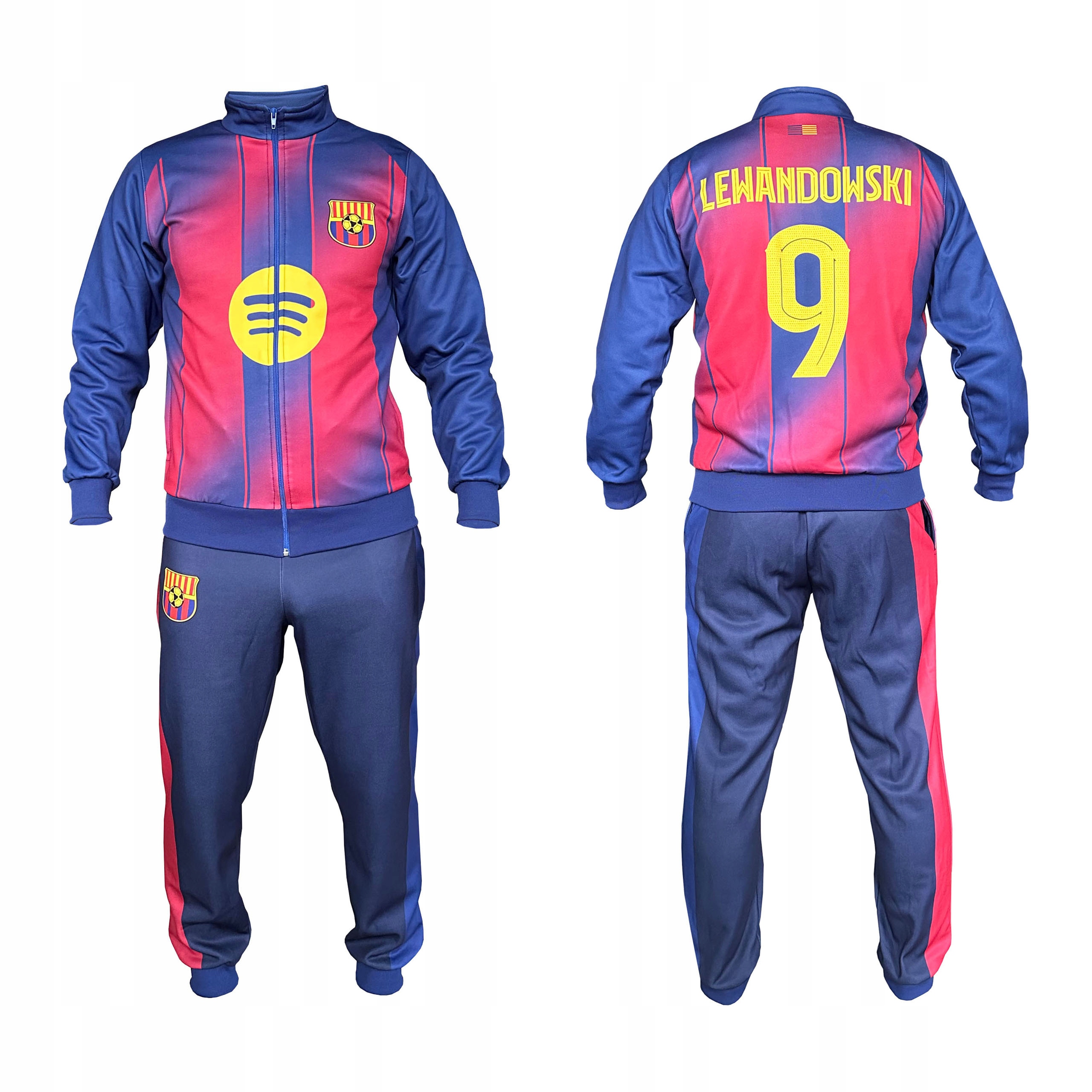ФУТБОЛЬНИЙ СПОРТИВНИЙ КОСТЮМ з кофтою на блискавці без капюшона з написом LEWANDOWSKI та довгими темно-синіми штанами з манжетом. Матеріал швидкосихаючий, дихаючий і приємний на дотик.