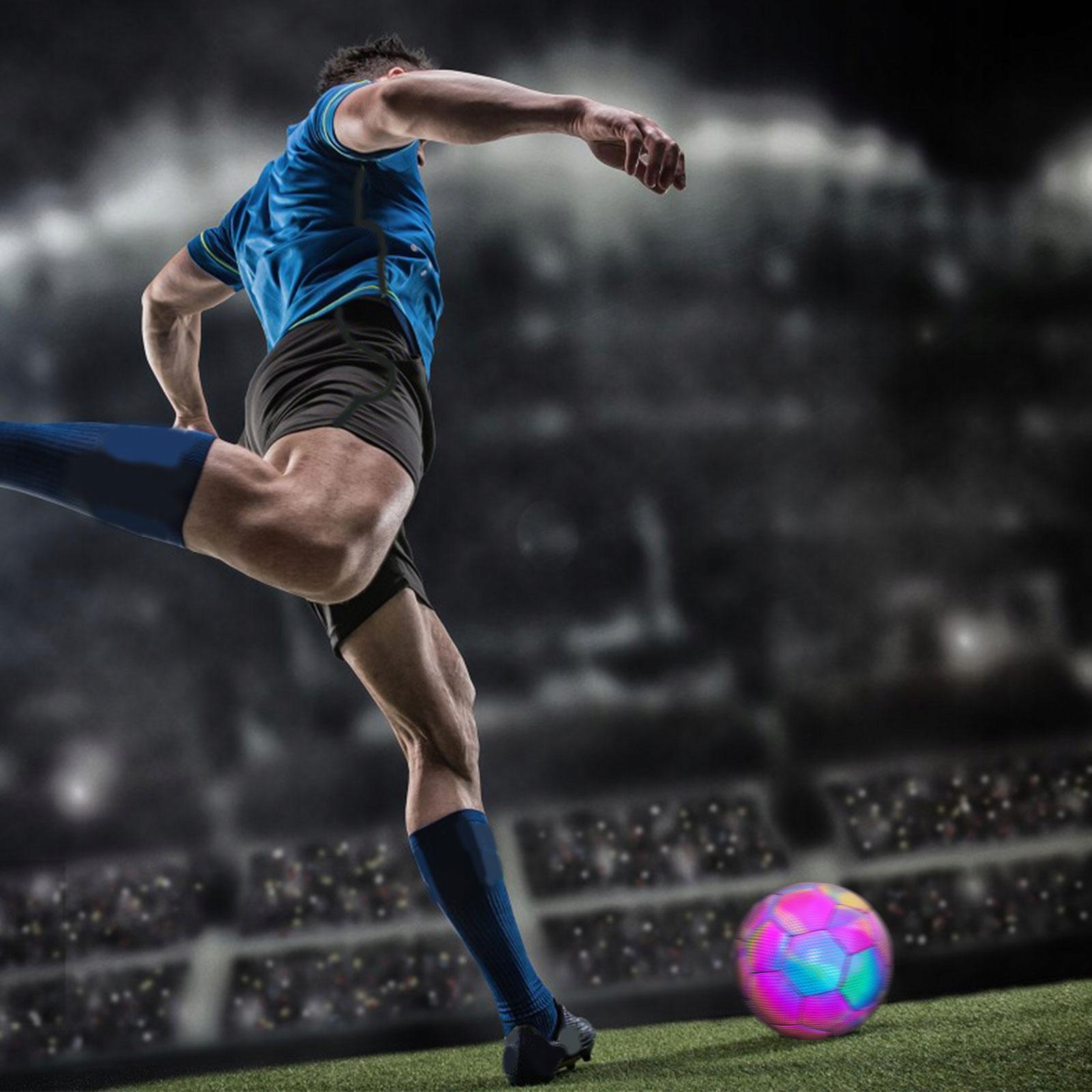 [Світловідбиваючий футбольний м’яч]: голографічний світловідбиваючий м’яч — це футбольний м’яч стандартного розміру, який виглядає голографічним і світиться вночі.