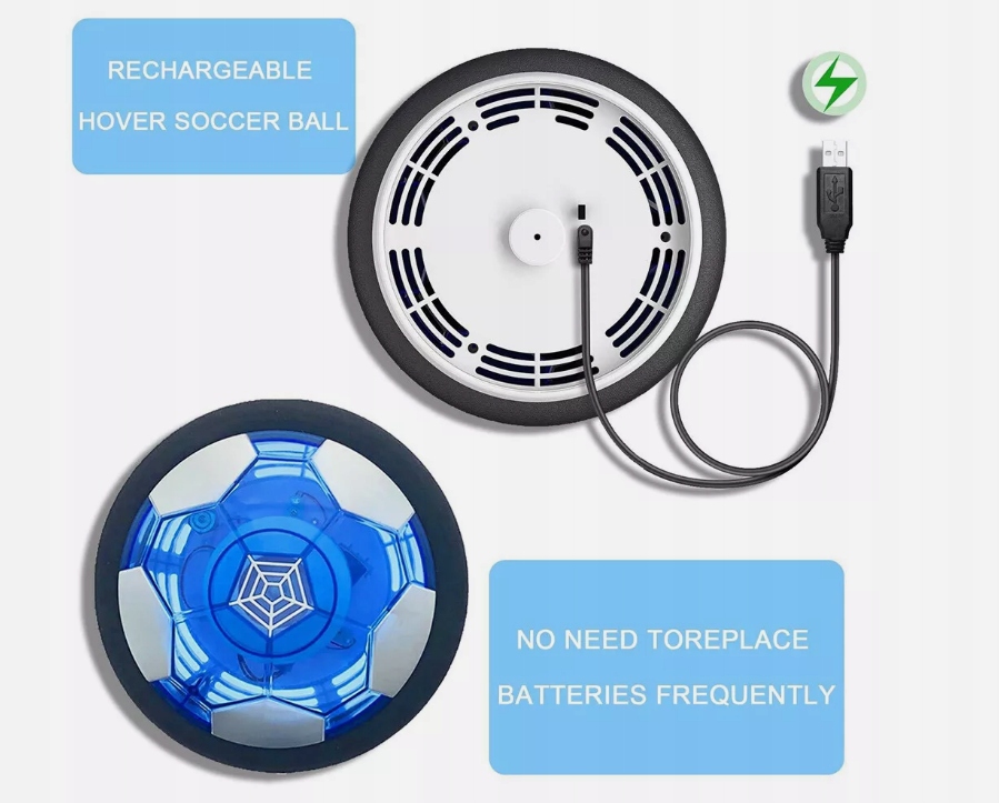 Цей футбольний набір із світлодіодним м'ячем, що парить і світиться, є ідеальною іграшкою для дітей, які люблять рух, спорт і змагання. Завдяки спеціальній технології пневматичної підвіски м'яч трохи парить над підлогою, ковзаючи по ній з великою плавністю - як справжній повітряний диск!
