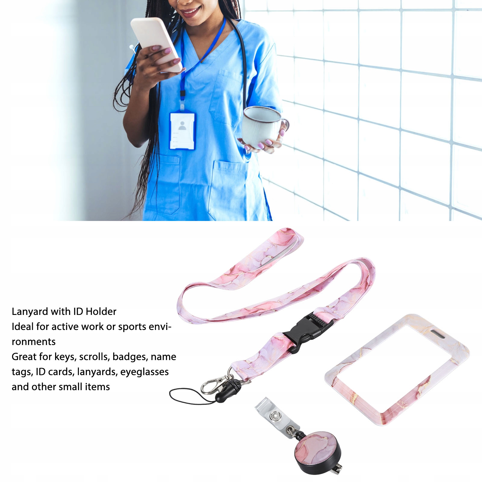 Призначення: регульований шнур із затискачем для посвідчення особи, ідеально підходить для вчителі, медсестри, лікарі, студенти, водії, офісні працівники в щоденному офісному використанні