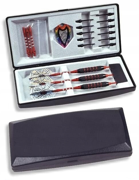 - Він має розміри 18 x 10 x 3,5 см, що дозволяє вмістити один набір дротиків і додаткового обладнання, наприклад дротиків, наконечників, насадок, точила або воску.