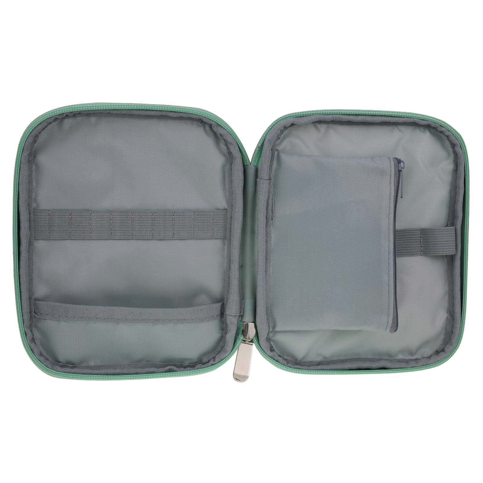 Ця порожня коробка для зберігання інструментів для в’язання гачком має кишені на блискавці та кілька еластичних ременів, достатньо містка, щоб помістити в неї більшість гачків і аксесуарів для в’язання.