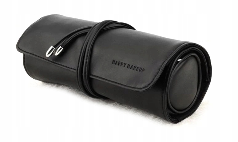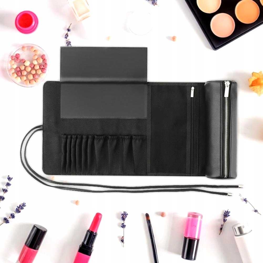 Елегантна містка косметичка на зав'язках "Roll n go" для пензликів для макіяжу та косметики чорного кольору зі знімною трубкою.