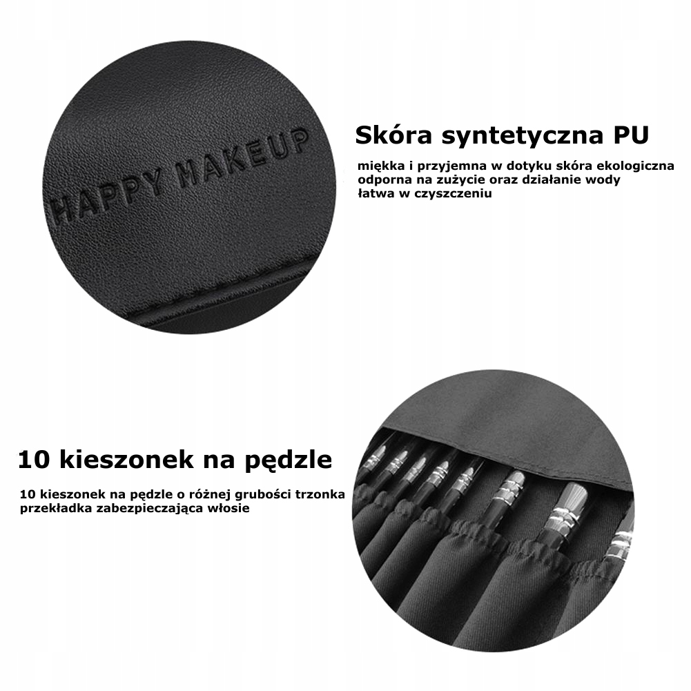 Кишеньки для щіток з різною товщиною стрижня покриті гумкою, яка утримує вироби на місці. Кишені вміщають до 30 пензликів з тонкою ручкою. Косметичка також має вкладку, яка захищає щетину від бруду та деформації.