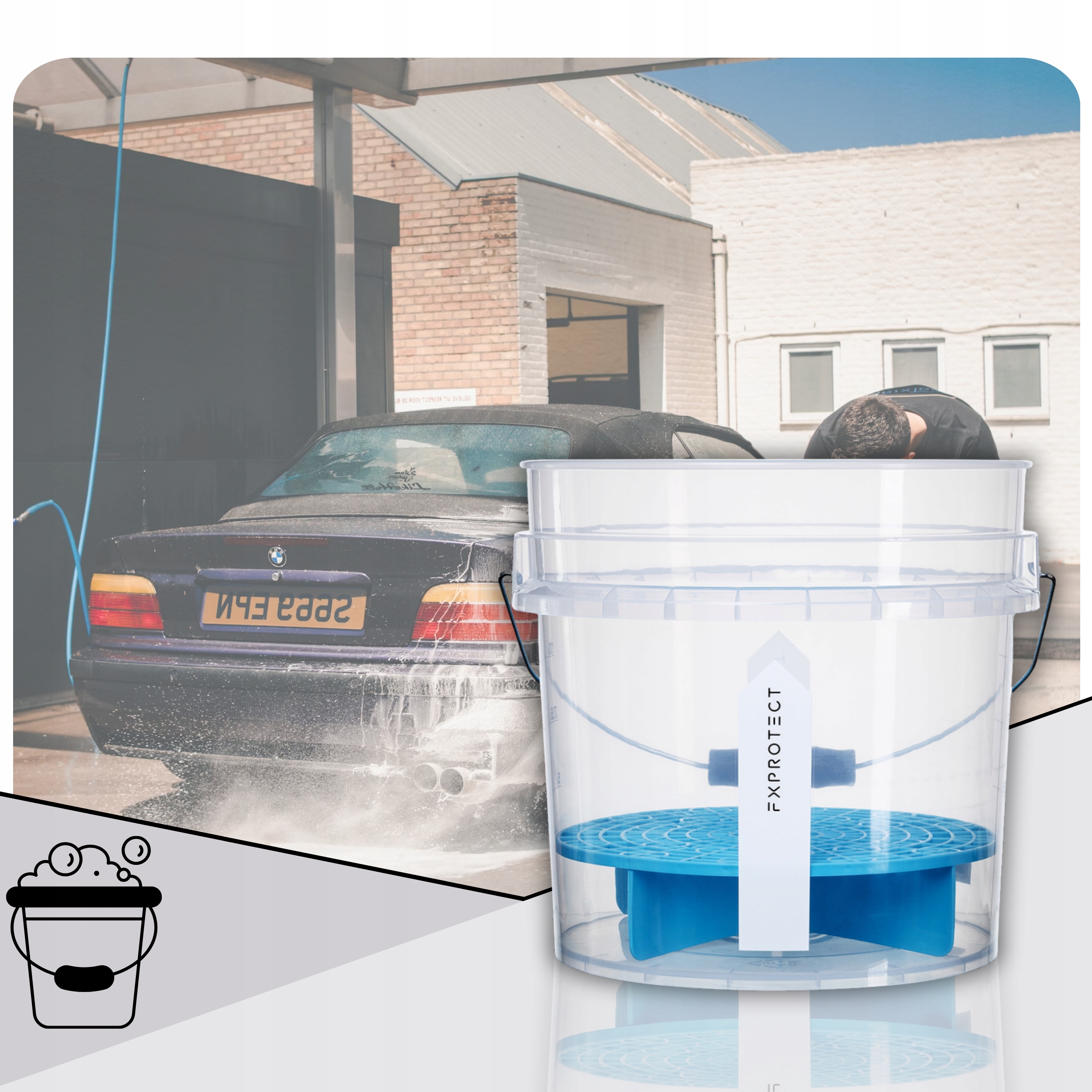 fx захистити відро для промивання Mini Clear прозорі стінки дозволяють повний, візуальний контроль над забрудненням води, що має вирішальне значення для захисту лаку від подряпин.