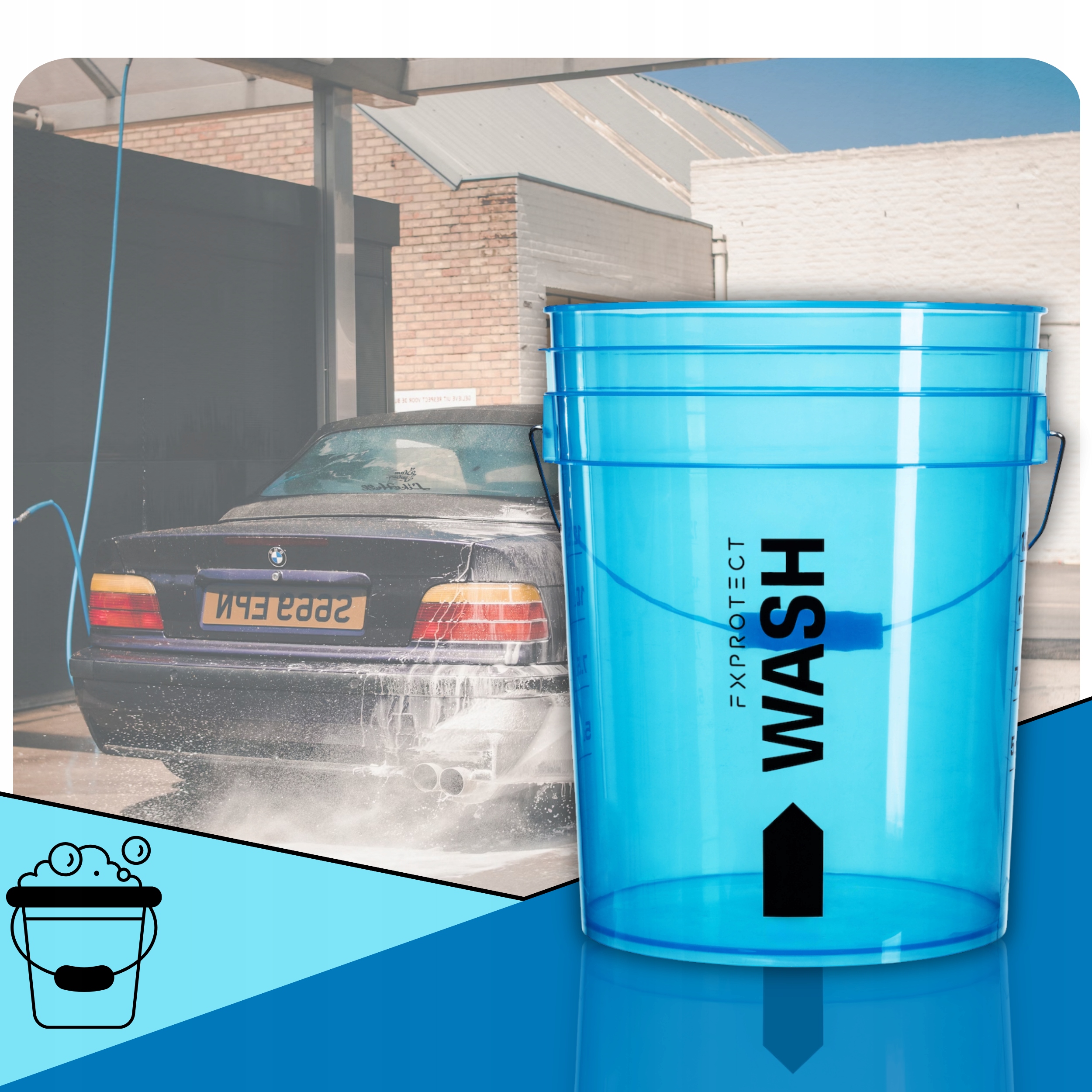 Перевірте процес промивання та подбайте про лак. FX Protect Wash Wash Wash Blue - прозорий відро для роздрібної торгівлі 20L з ергономічною ручкою.