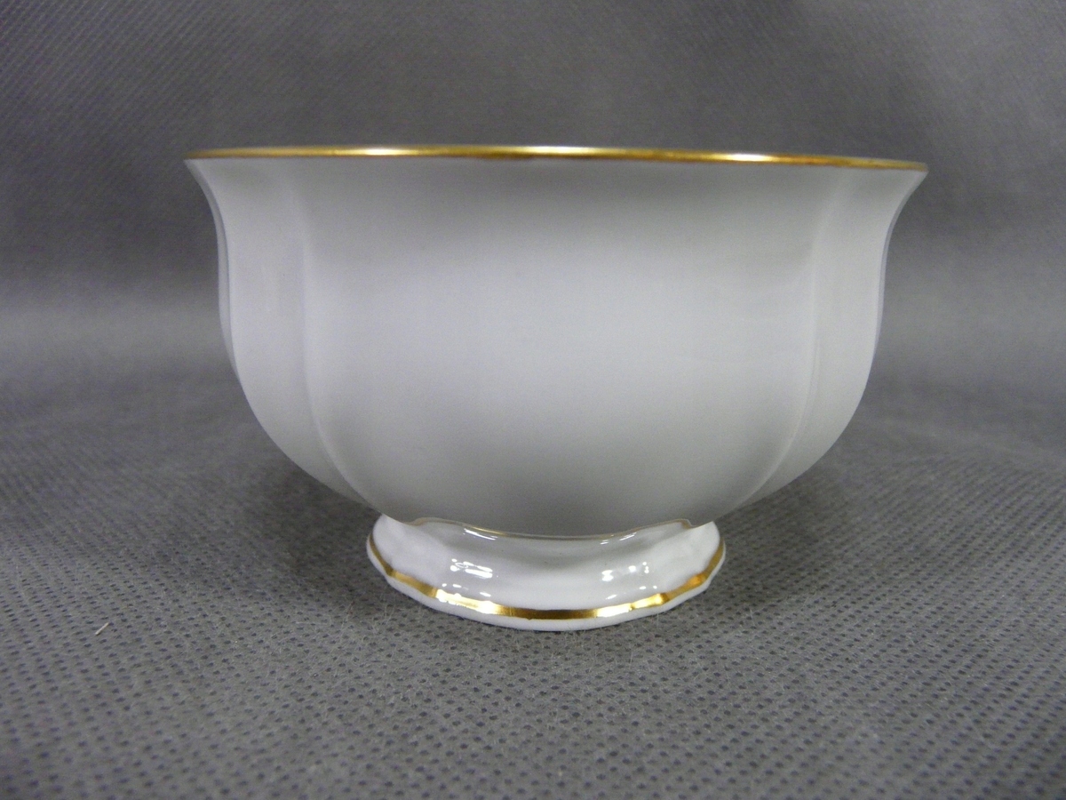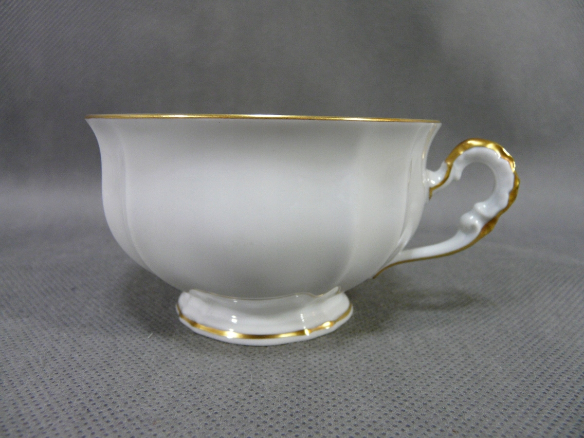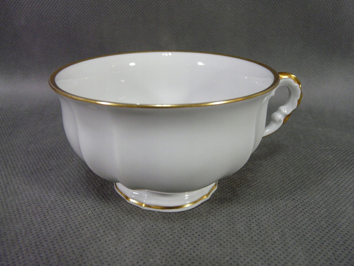 Біла порцеляна, делікатно прикрашена позолотою по краях