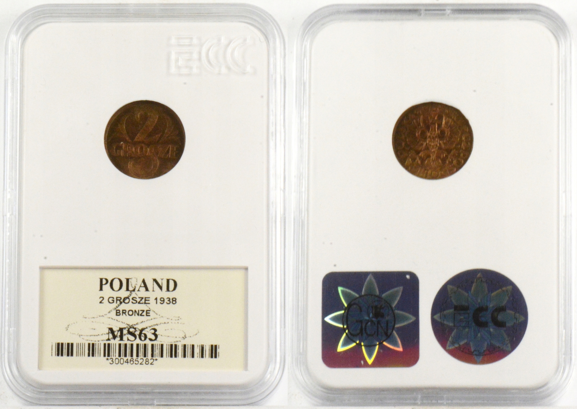 ФЗ. 2 GROSZE 1938 БРОНЗА MS63 20/01