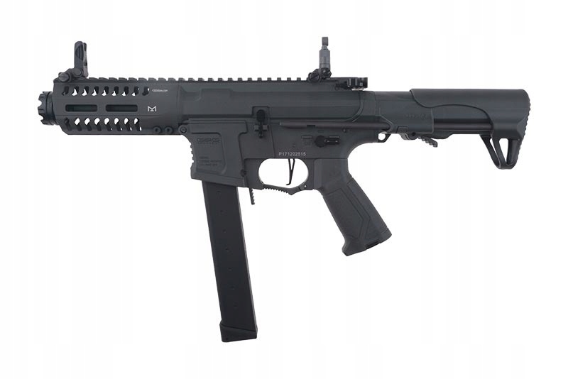 На перший погляд, репліка нагадує іншу репліку із серії AR-15, але, окрім використання коробки передач версії 2 або пістолетної рукоятки, подібності закінчуються. Отримуємо добротну, компактну репліку типуPDW. Репліка оснащена складаним прикладом зі сталі та пластику, а напрямна містить штекер акумулятора (не входить в комплект) і систему MOSFET. Репліка використовуєнестандартну пістолетну рукоятку, курок і металеву планку в системі M-LOK®з ліцензованим маркуванням. На задній частині репліки є відкидні приціли. Крім міцного полімеру, репліка має сталеві елементи, серед яких: приклад, кришка викидача снаряда, що відкривається збільшеною рукояткою заряджання, а також гвинти та штифти. Стовбур копії увінчаний спеціальним дульним пристроєм. У набір входить магазин hi-cap ємністю 300 BB.