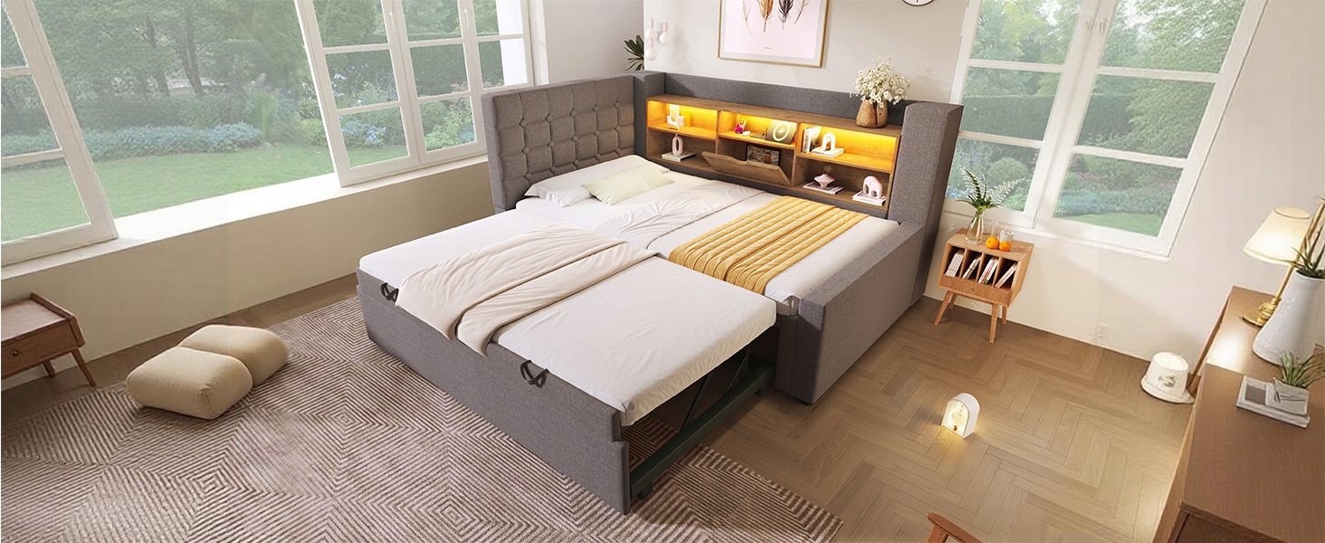 Наше ліжко має повністю вбудовану конструкцію, плавні розсувні механізми та панелі доступу, що складаються або тягнуть. Ремені відповідного кольору забезпечують легке використання та бездоганну естетику порівняно зі звичайними ліжками.