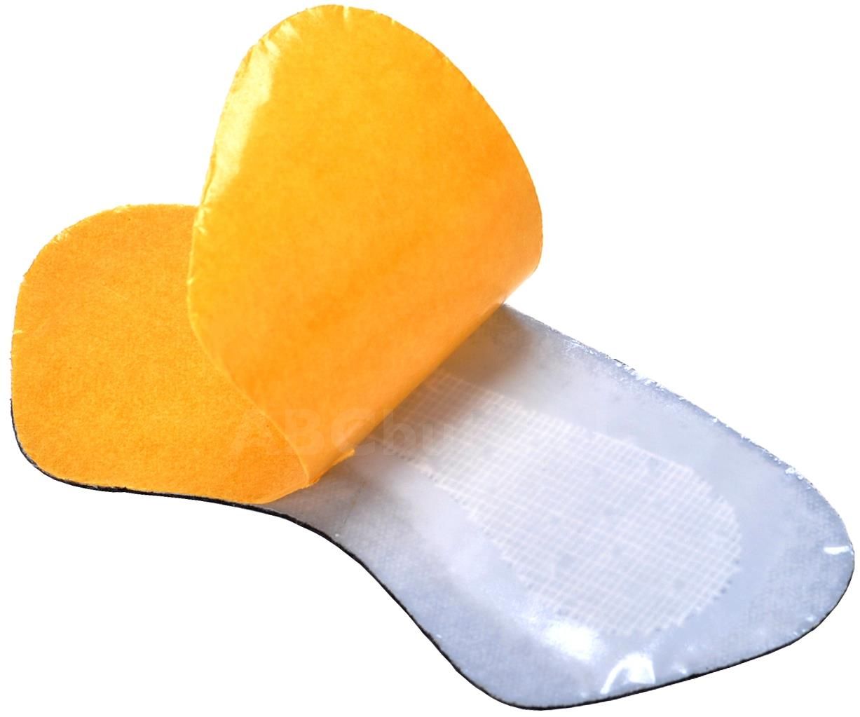 - Нижня частина устілок покрита з шаром клею, закріпленим пластиром, що дозволяє надійно закріпити виріб усередині взуття.