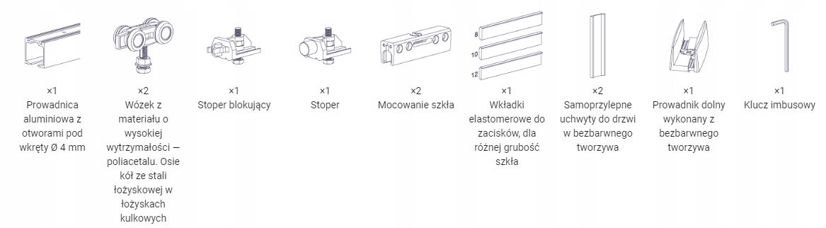 – Візки оснащені шарикопідшипниками найвищої міцності, які забезпечують безвідмовну роботу до 100 000 циклів відкривання та закривання дверей вагою до 100 кг