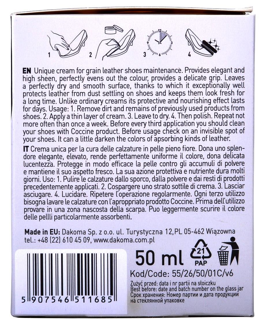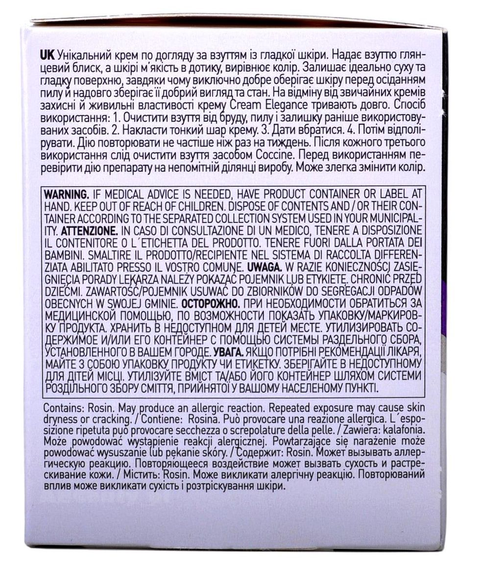 - Паста на основі натуральних воску та поживних речовин призначена для догляду за натуральною або синтетичною гладкою шкірою.