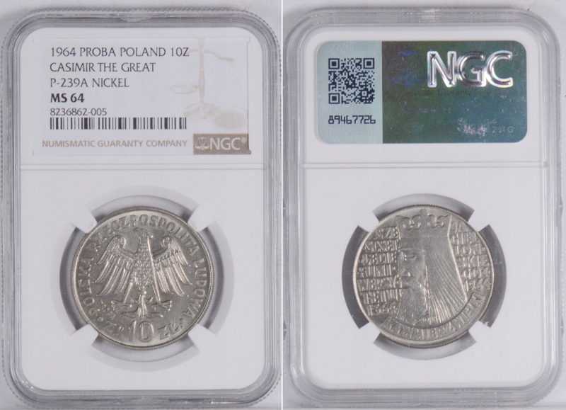 G143.10 PLN 1964 Kazimierz Wielki опукла репетиція NGC MS64
