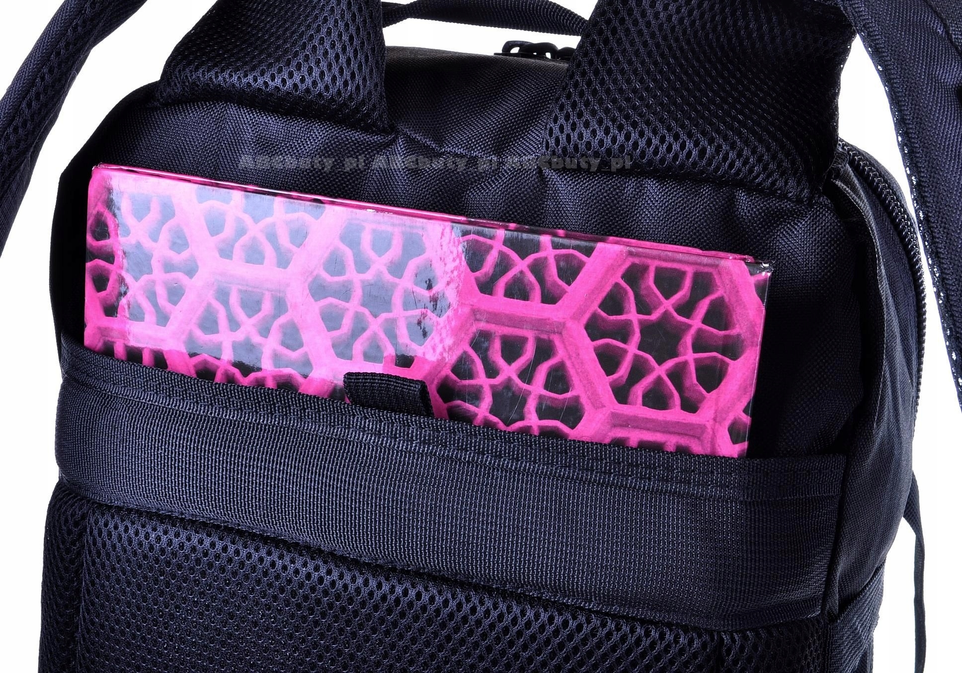 - Задня частина рюкзака має відповідну форму зі вставками, які створюють простір для циркуляції повітря навколо спини користувача.