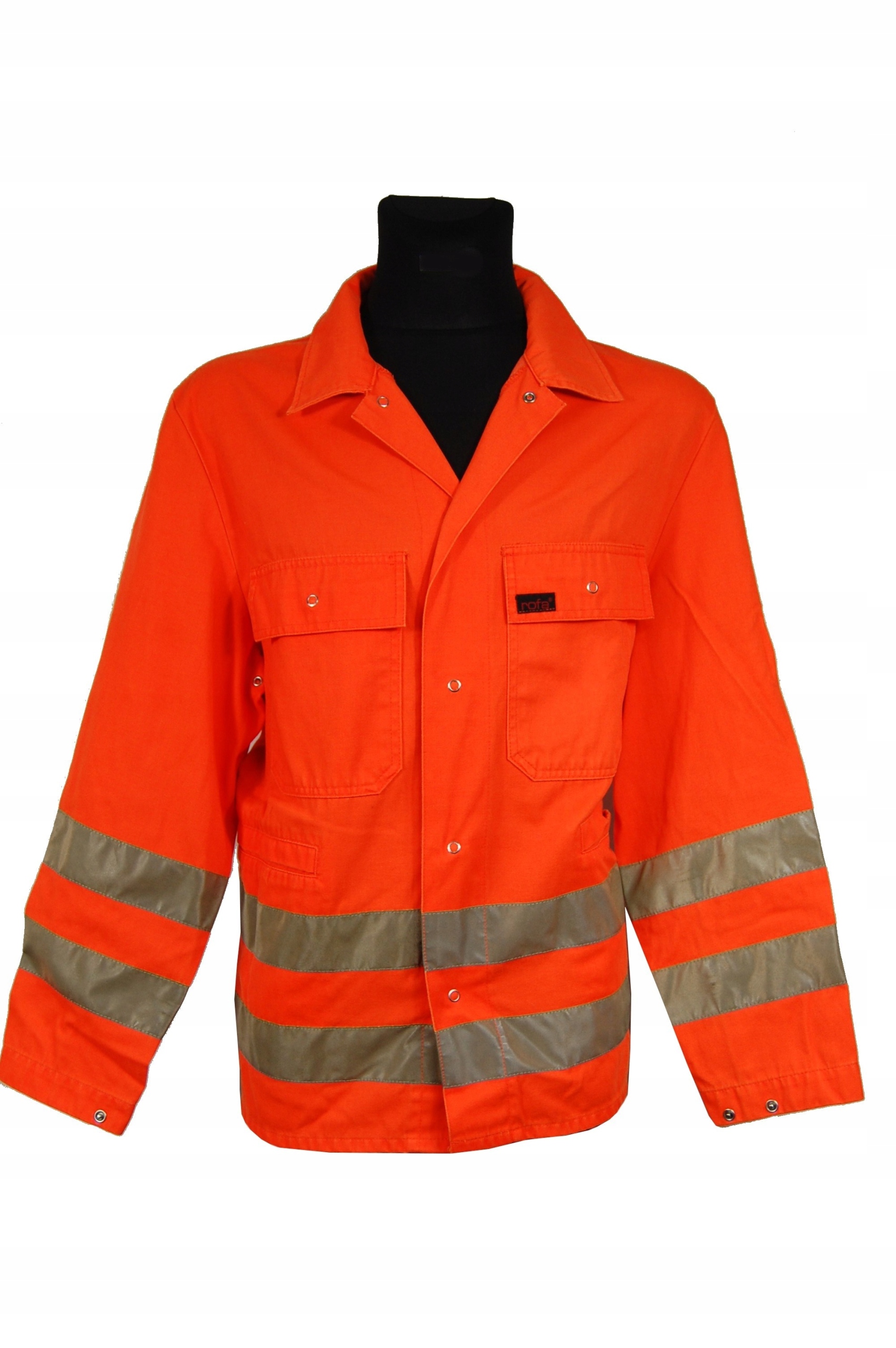Помаранчевий дорожній світшот зі світловідбиваючими смугами був у вживанні та в дуже хорошому стан, є незначні сліди користування, різні нашивки з назвою, інші логотипи компанії. Має багато кишень. Походить від німецьких компаній.