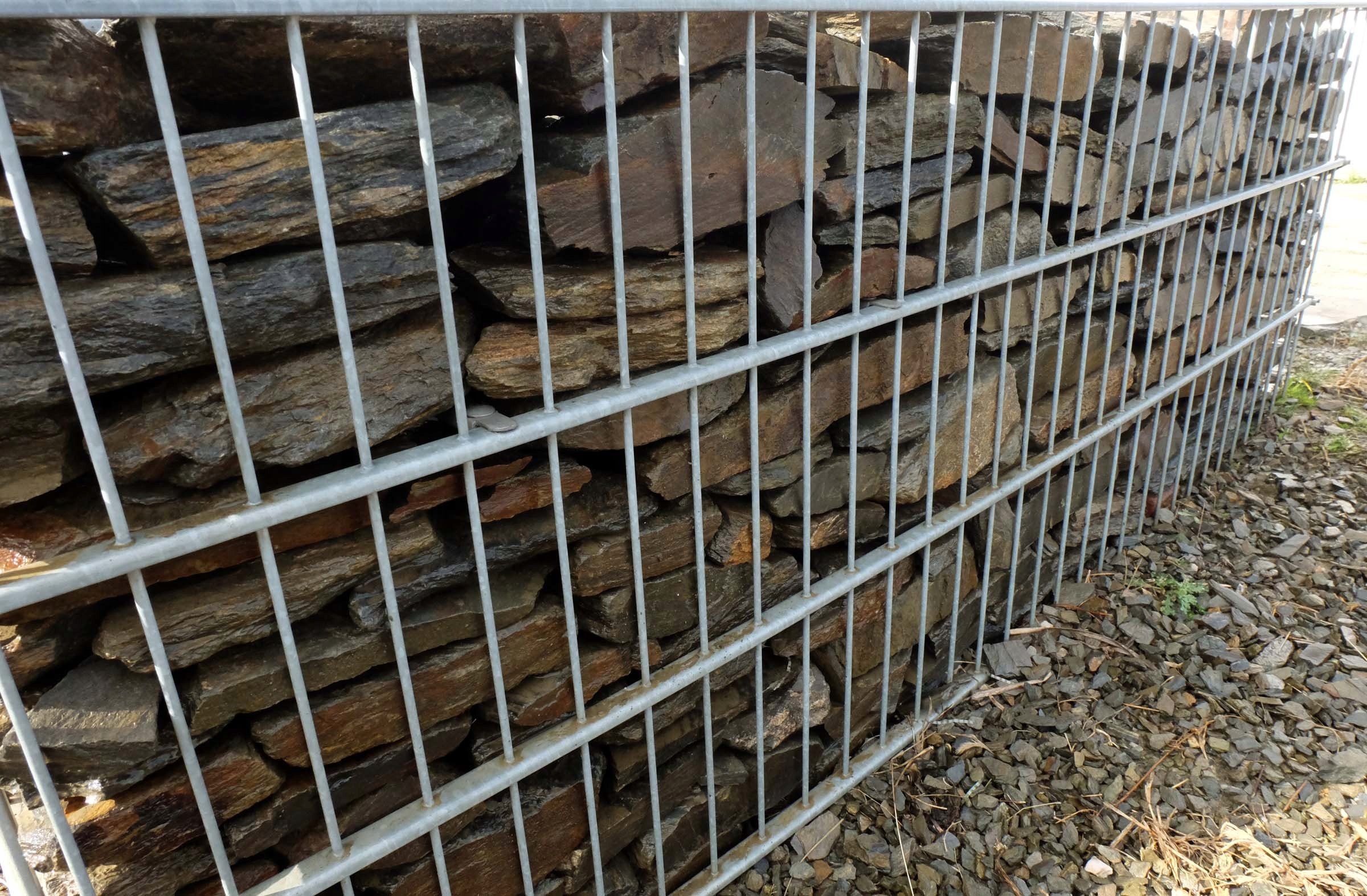 сірого кольору кори -одна з найчастіше вибраних каменів з габіона. Завдяки його витонченому розміру він підходить до всіх видів кошика з Габіона.