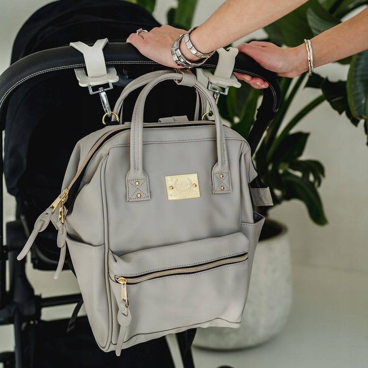 Універсальні гачки для візка дозволяють легко прикріпити рюкзак або сумка, щоб були під рукою. Матеріал, з якого виготовлені ручки - спеціальний гнучкий матеріал, який захистить рюкзак і сумочку від ковзання по ручкам коляски. Завдяки карабінам, ручки дозволяють швидко і дуже просто монтувати і розбирати. Вони підходять до всіх сумок, органайзерів і рюкзаків La Millou, доступних на наших аукціонах Allegro.