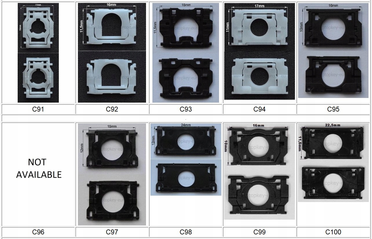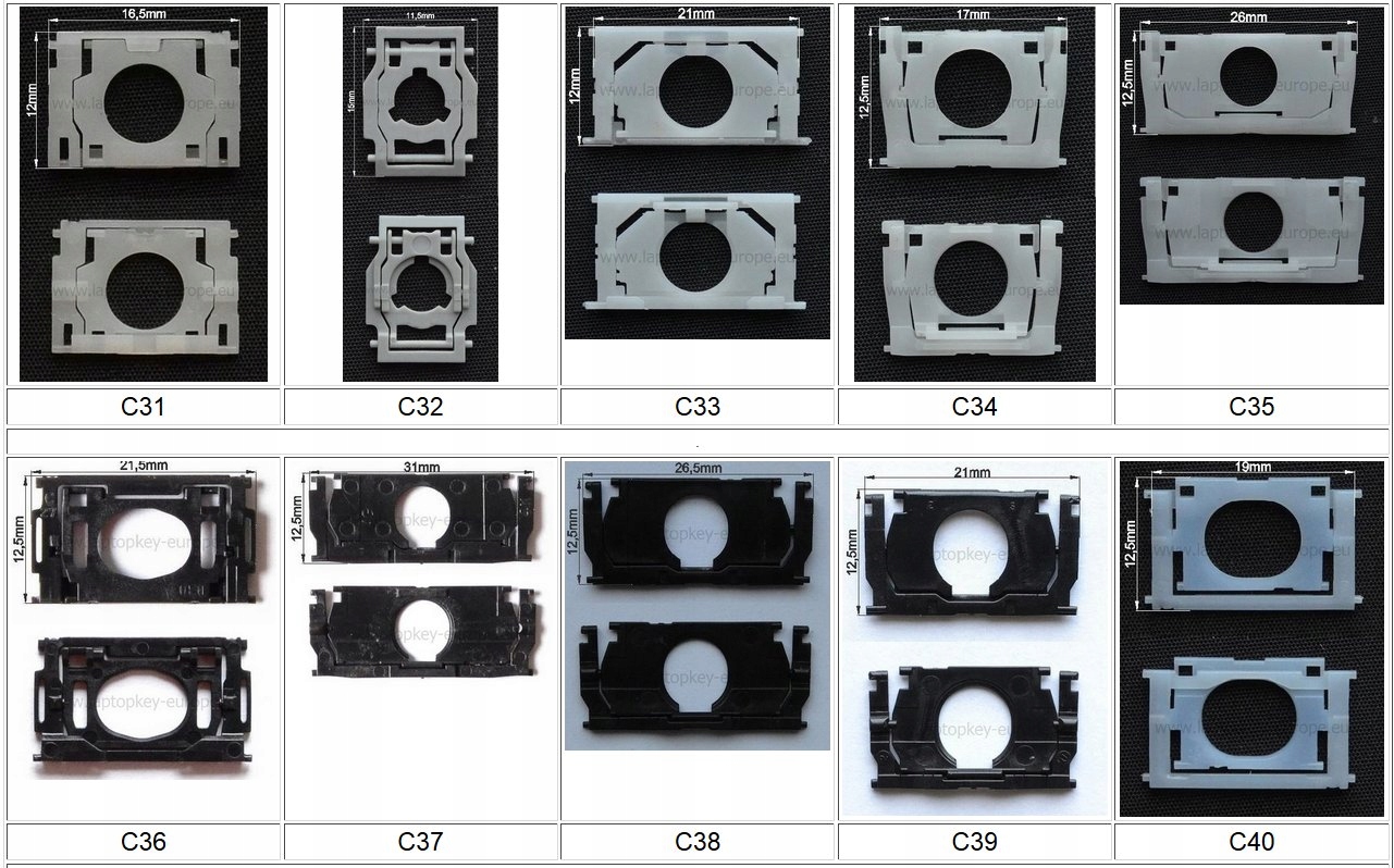 Предметом цієї пропозиції є великі кріплення для клавіш клавіатури. Ці гачки використовуються для великих клавіш, таких як Backspace, CapsLock, Enter.... Кожна фотографія показує той самий гачок з обох сторін і два основних розміри, наведені з точністю до півміліметра. Кожен монтаж має свій унікальний номер, що дозволяє швидко оформити транзакцію. Після покупки напишіть у формі варіантів доставки або електронною поштою, яке саме кріплення відправити. Ціна вказана за одну штуку. У разі виникнення проблем з підбором надішліть фото засувки або порожнього місця після ключа і ми підберемо відповідний тип.
