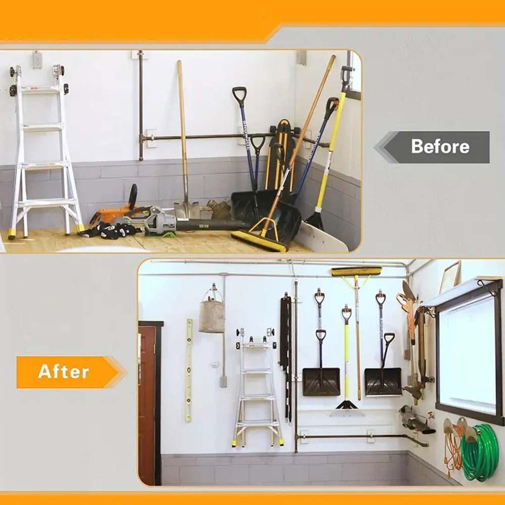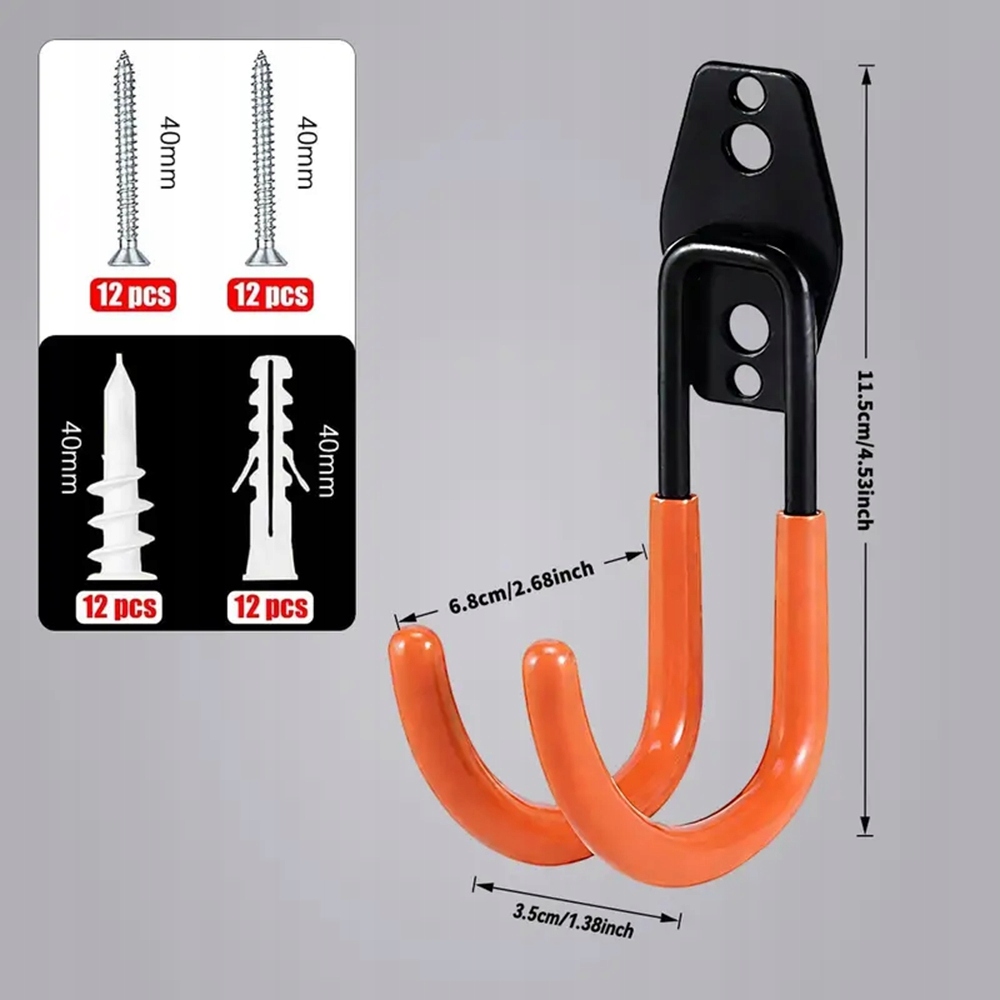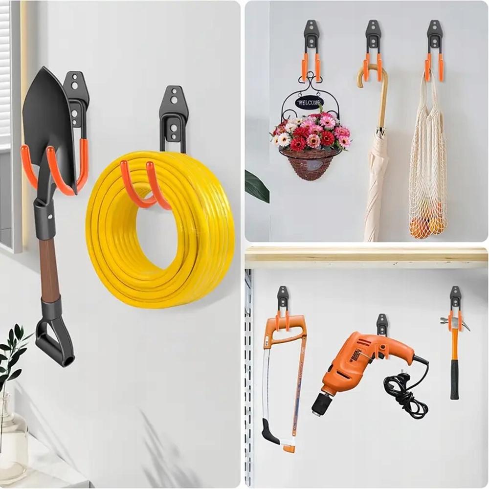 🪝🪝🪝【Стійкий до подряпин дизайн】 Товсте покриття з ПВХ на нашому тримачі шланга запобігає дряпанню труб, а гачки вигнуті на кінцях, щоб предмети не зісковзували. Незалежно від того, підвішені водопровідні труби, садовий інструмент чи важкі предмети, як-от велосипеди та драбини, ви можете міцно їх прикріпити, не турбуючись про те, що інструменти впадуть.
