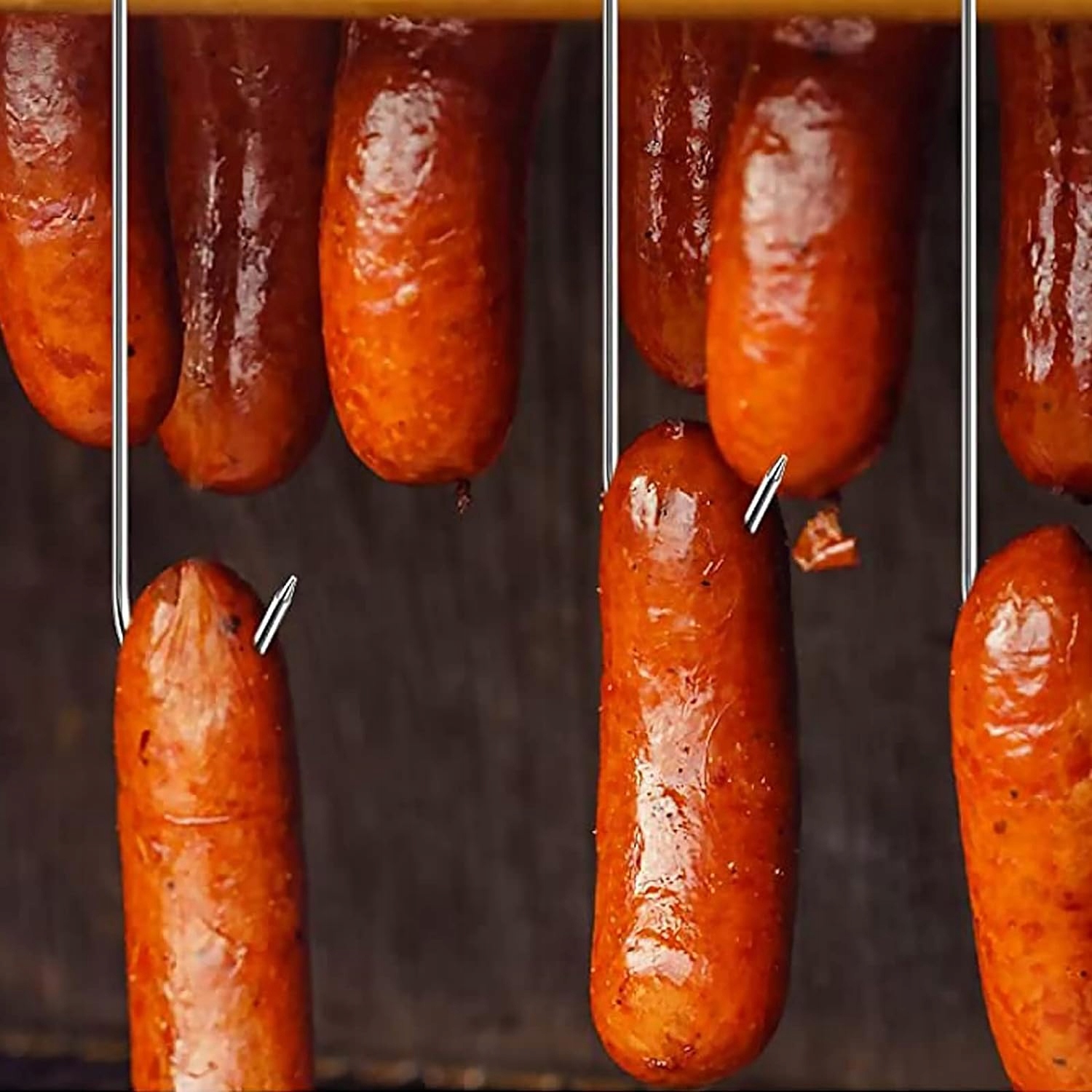 Точне нарізування м'яса є важливим, щоб воно було добре захищене під час копчення та сушіння, а для цього вам потрібен добре загострений кінчик. Представлені коптильні гачки мають гострі кінчики, що полегшує набивання продуктів у потрібне місце.