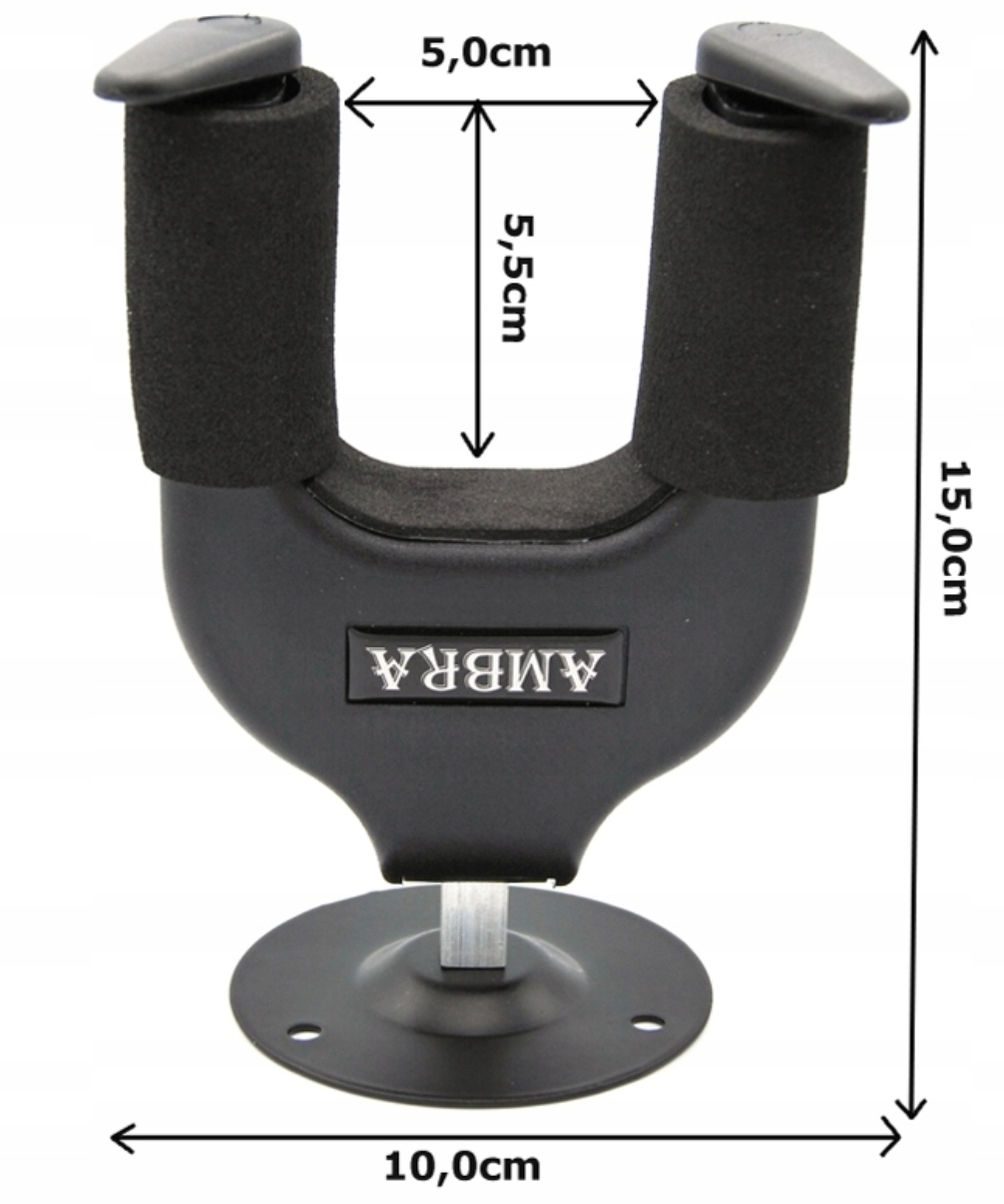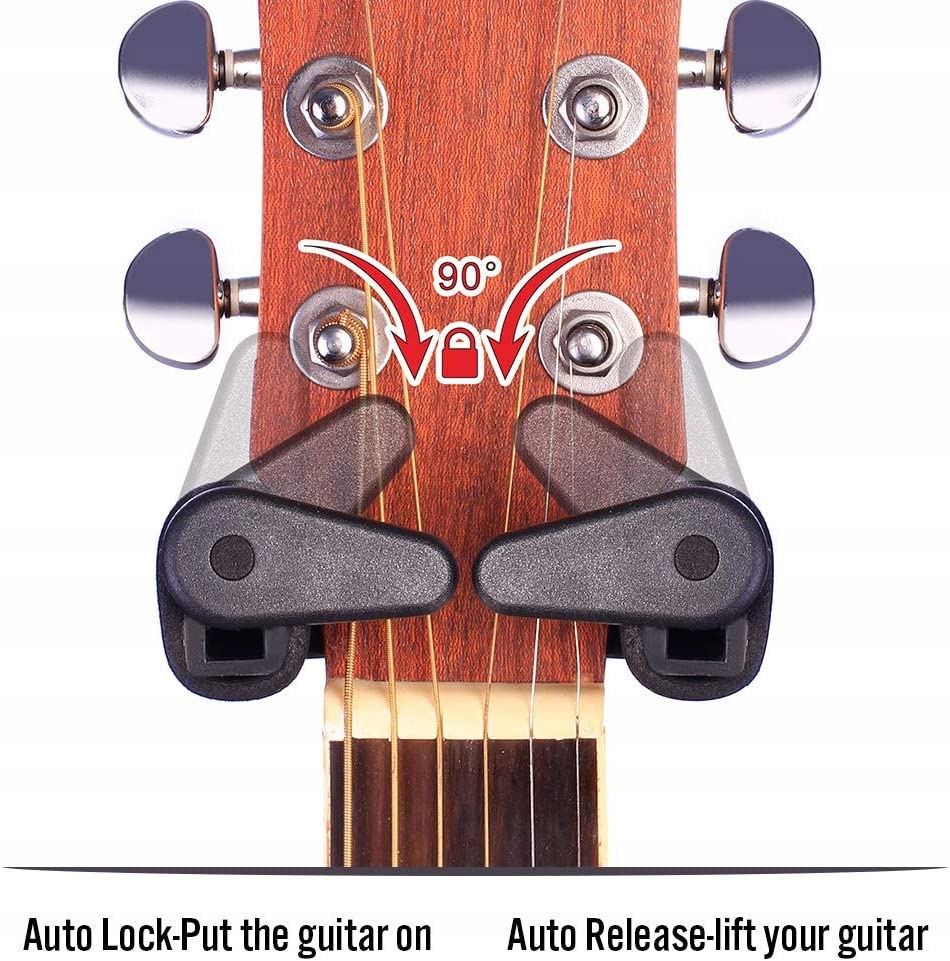 Настінна вішалка для гітари з трьома дюбелями (входять в комплект), дуже естетично виготовлена з міцного пластику в поєднанні з металевим гачком. Місця контакту з гітарою покриті м'якою поліуретановою піною для захисту інструменту від стирання. Вішалка дуже зручна і універсальна, підходить практично для всіх типів гітар, мандолін, банджо і т.д.