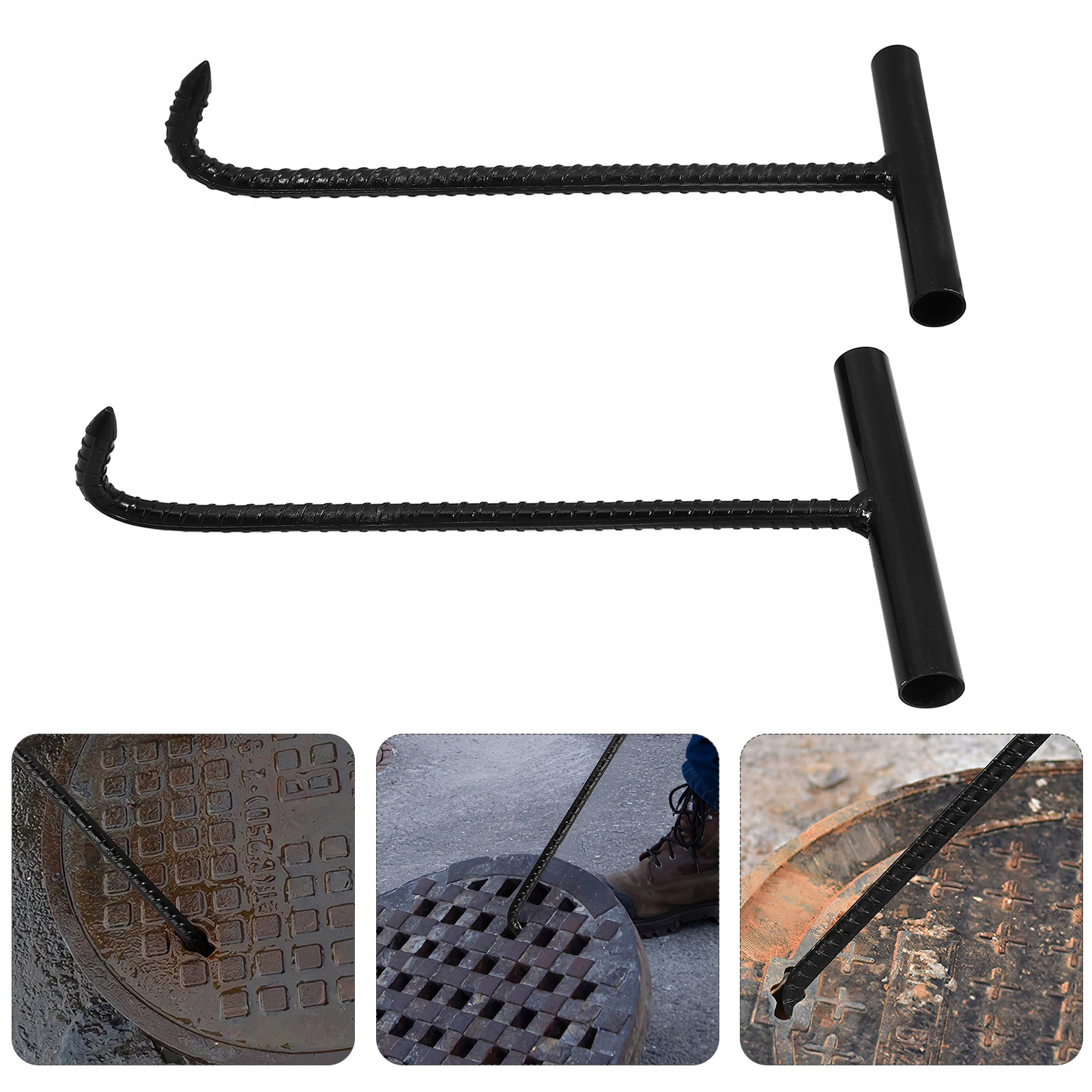 ✅ t -укладений hak для відкриття кришки виготовлена з армованої сталі, що забезпечує міцність та надійність. Він використовується для підняття кришок свердловин, що робить його зручним та практичним у використанні. Гачок здатний підняти великі ваги.