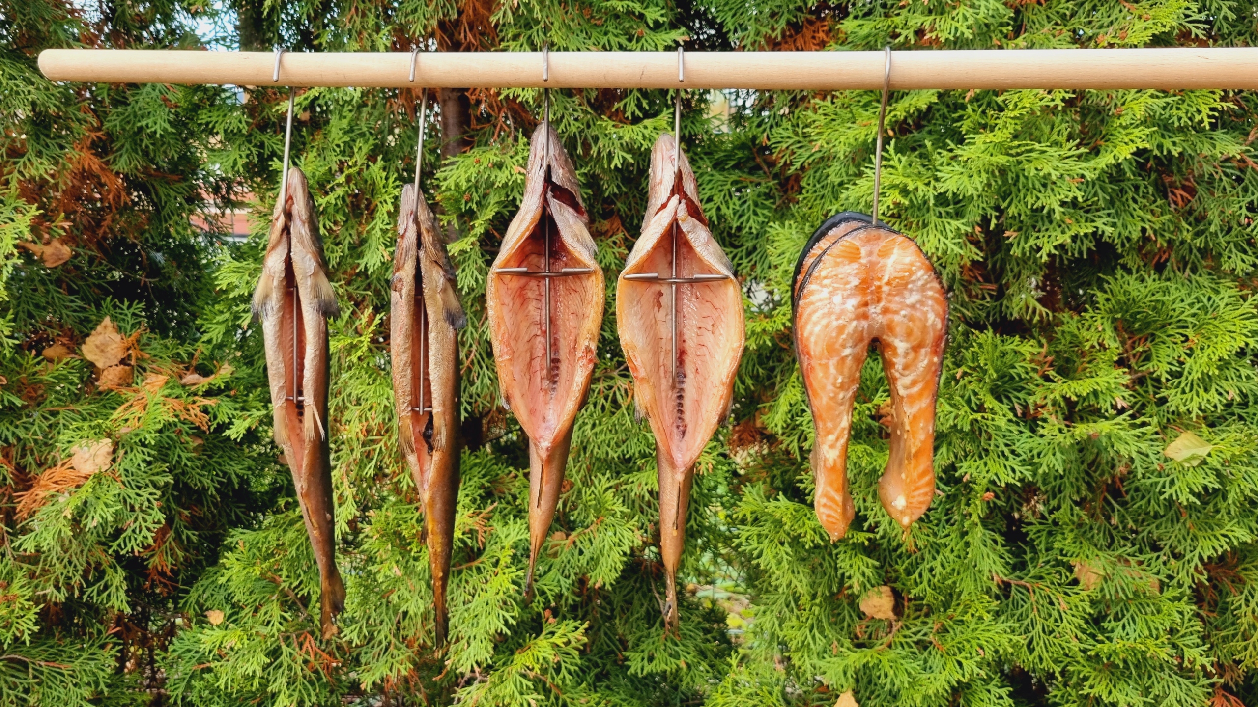Характерний вигин серцевини гачка дозволяє швидко та легко наколоти рибу на лопаті та надійно підвісити на коптильній планці.