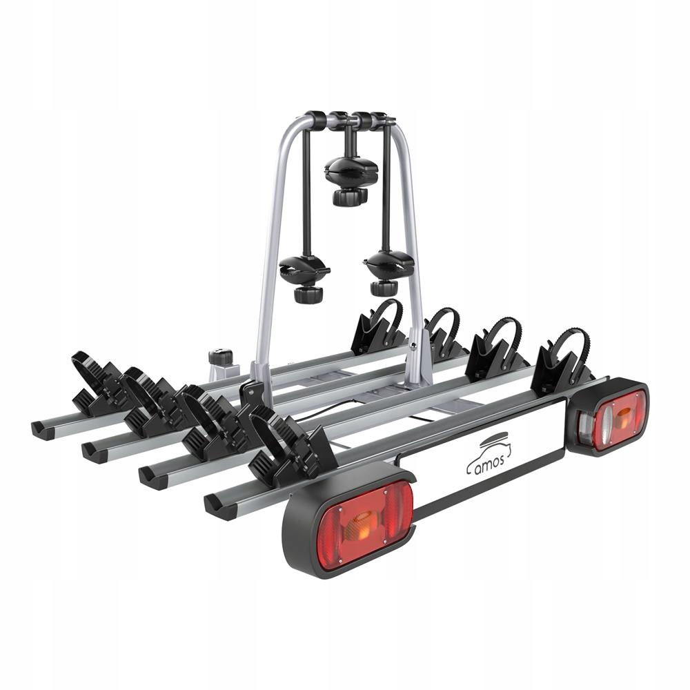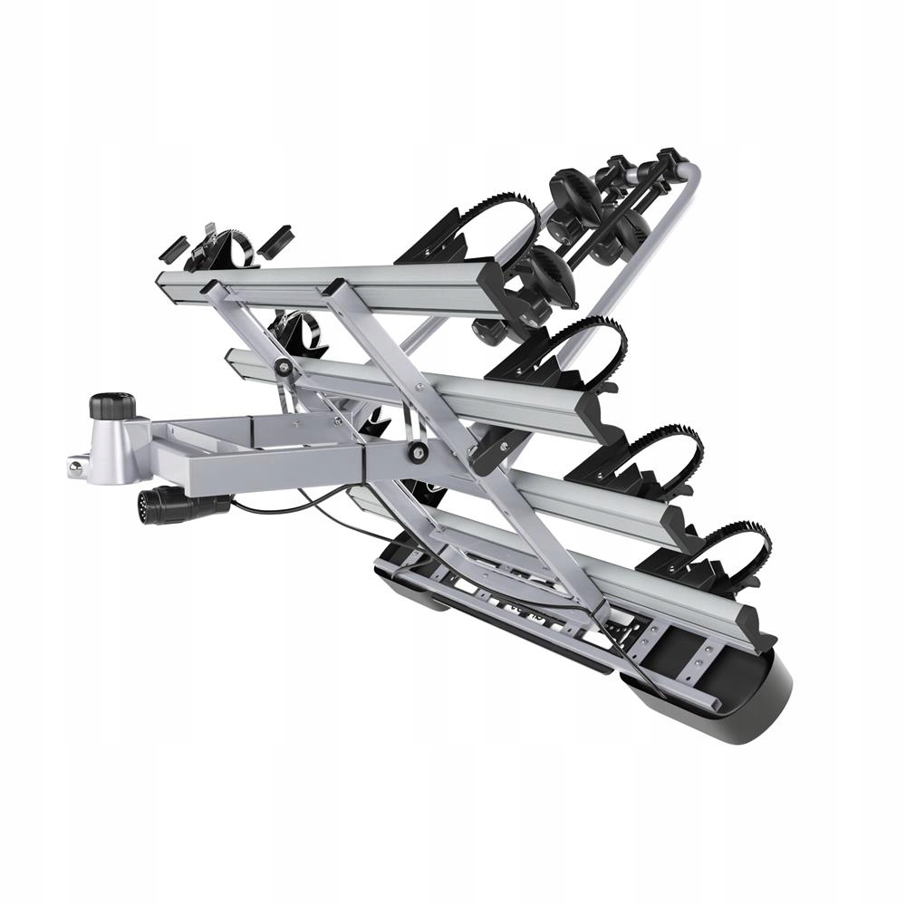 - Стійка дозволяє комфортно транспортувати чотири велосипеди, а міцна конструкція зі сталі та алюмінію гарантує її міцність і довговічність, а також елегантний зовнішній вигляд