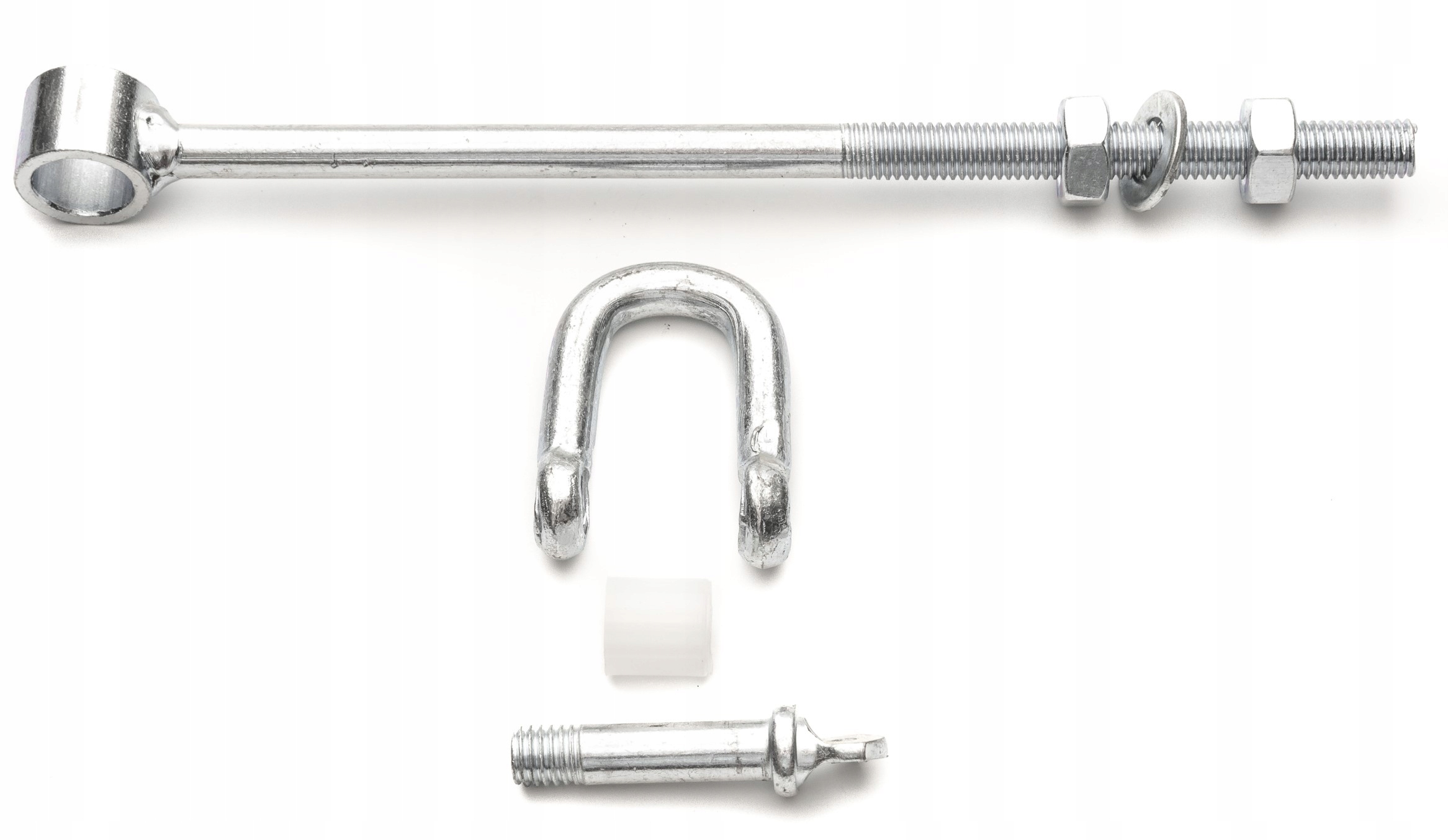Гак для гойдалок з дужкою, оцинкований, використовується для кріплення гойдалок і гамаків. Дужка має тефлоновий підшипник, що гарантує продовжений термін служби. У набір входять дві гайки та одна шайба.