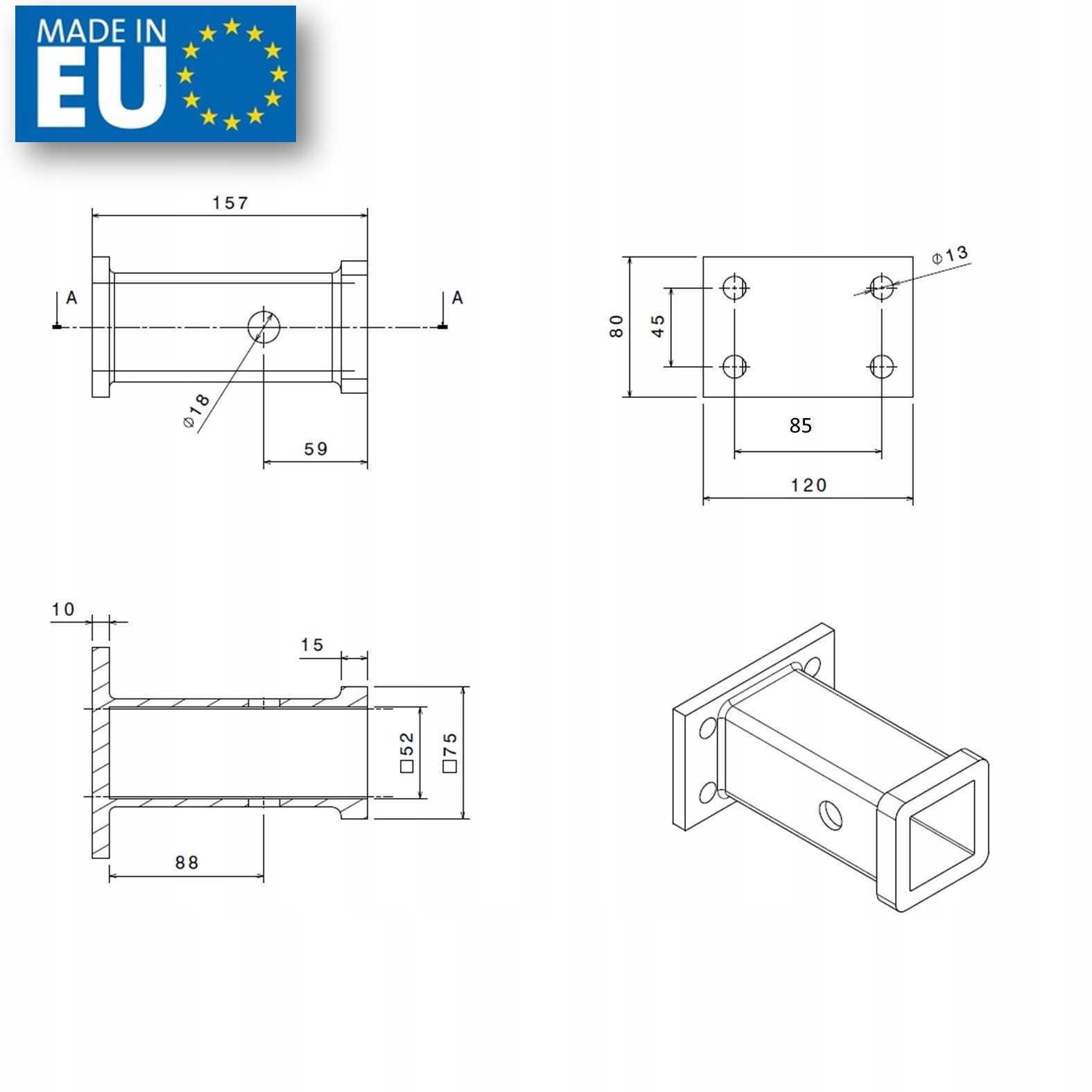 Завдяки цьому адаптеру ви зможете встановити такі аксесуари практично на будь-який транспортний засіб з відстанню між отворами для кулі або зчіпного пристрою 85x45 мм.