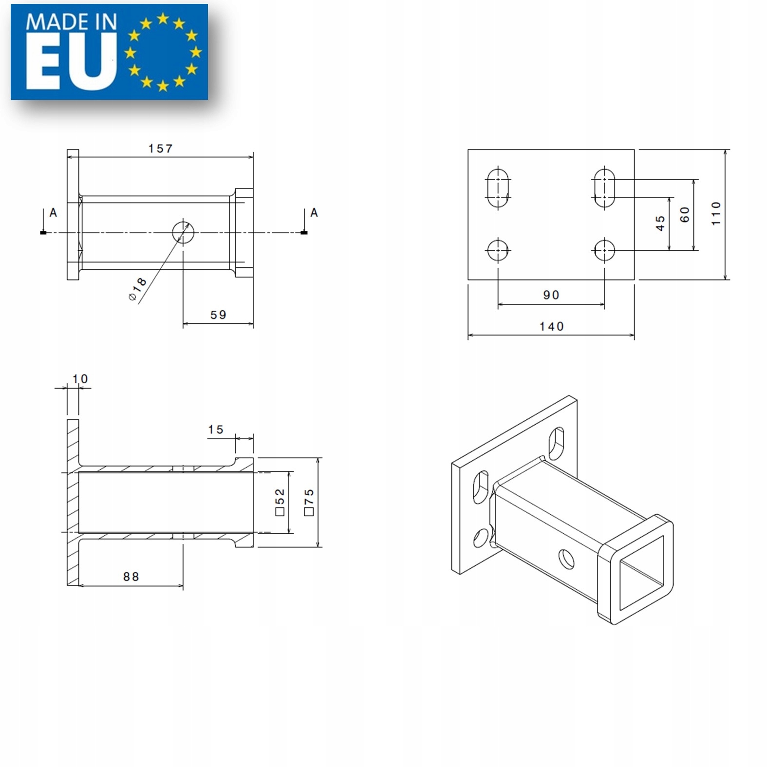 Цей тип відстані між отворами є найпоширенішим. у фаркопах у легкових автомобілях.