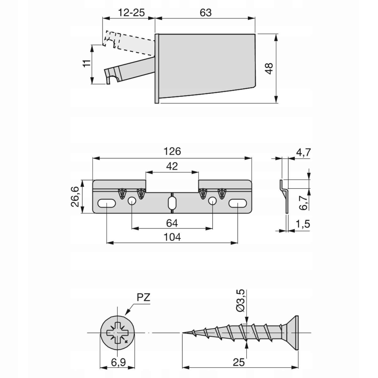 Регульована меблева вішалка призначена для навішування верхніх шаф. Виріб стійкий до великих навантажень - має вантажопідйомність 70 кг при використанні двох вішалок на шафу. Підвіска кріпиться в задній частині корпусу з внутрішньої сторони, а потім підвішується на планку кріплення. Додатковою перевагою є можливість регулювання підвісної шафи - підвіски дозволяють регулювати глибину до 27 мм і висоту до 32 мм. У набір входять монтажні гвинти Ø3,5 х 25 мм.