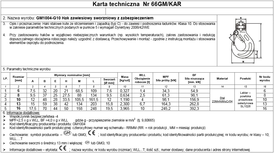 - Гак класу "10" з порошковим покриттям синього кольору, призначений для мотузкових, ланцюгових та фіберових строп - для підйому вантажів.