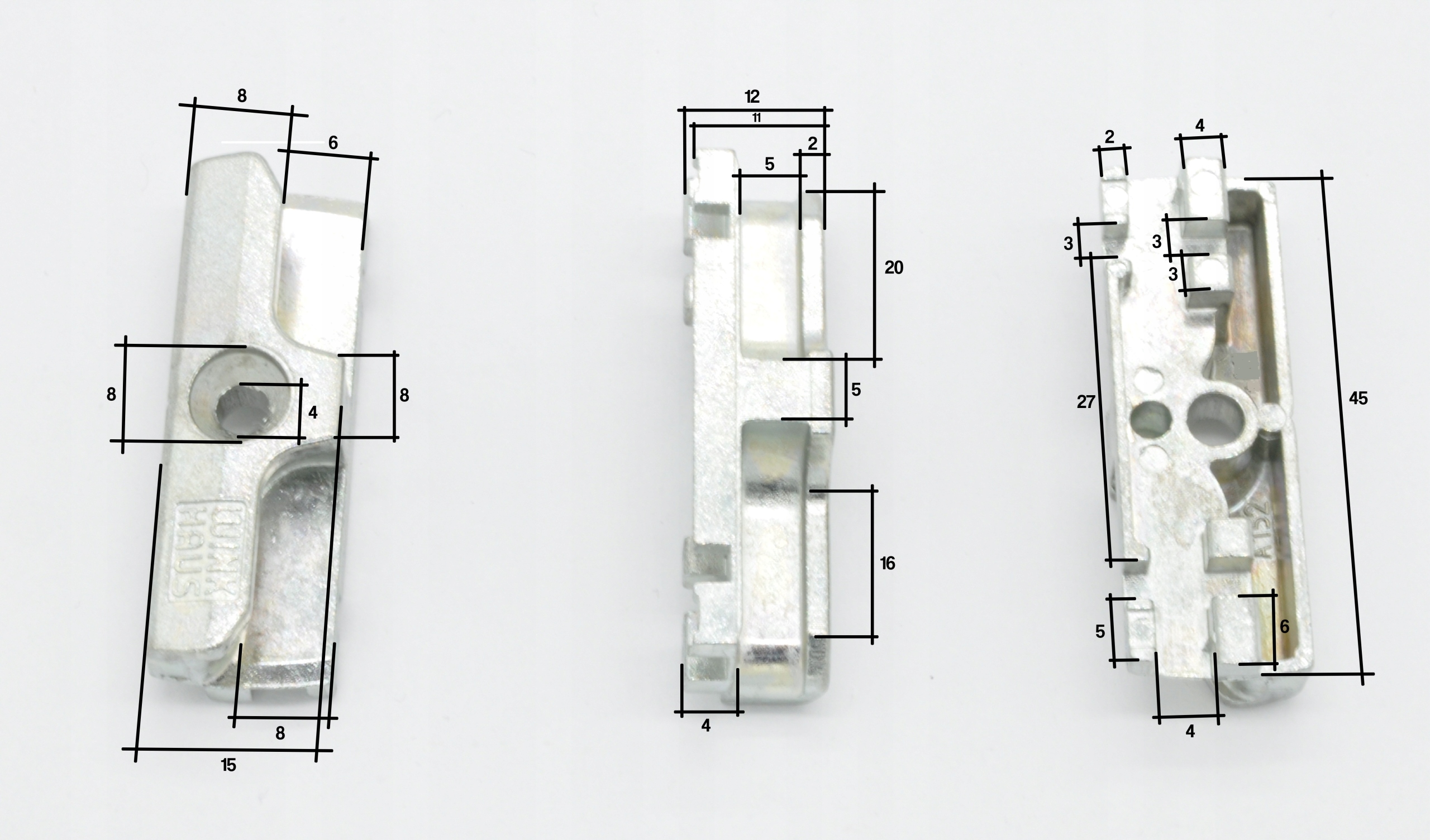 Опис: гачок виготовлений зі сплаву замак. Призначений для встановлення пластикових вікон. Фурнітура Winkhaus: Softline 70 AD, foliert Softline 70 MD, Topline AD, Topline MD, Topline Plus, Softline 82 AD, Softline 82 MD, Artline, Swingline, Alphaline, Alphaline 90.