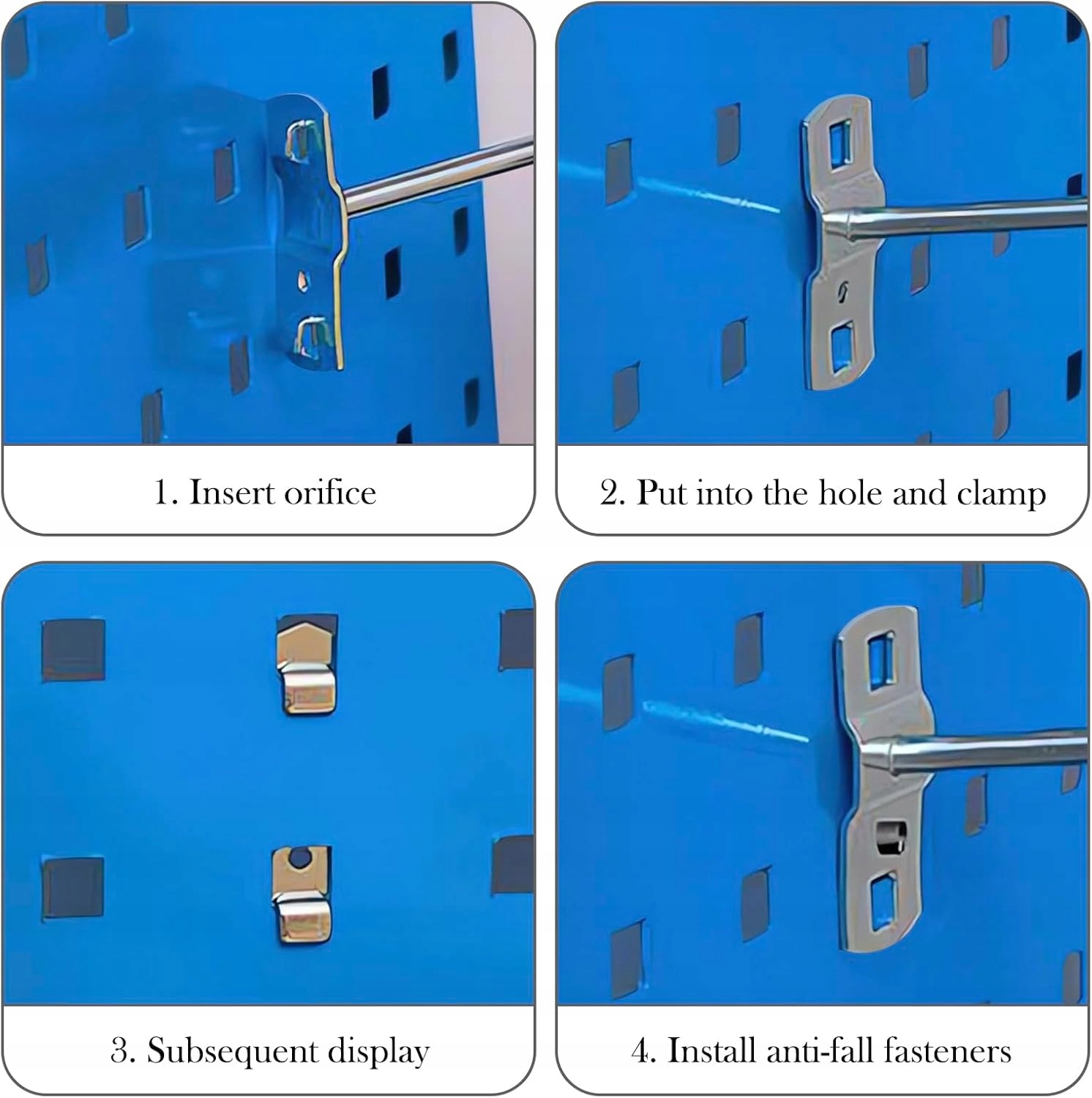 • Професійні гачки для пегборда, призначені для підвішування інструментів та інших елементів на перфоровані дошки