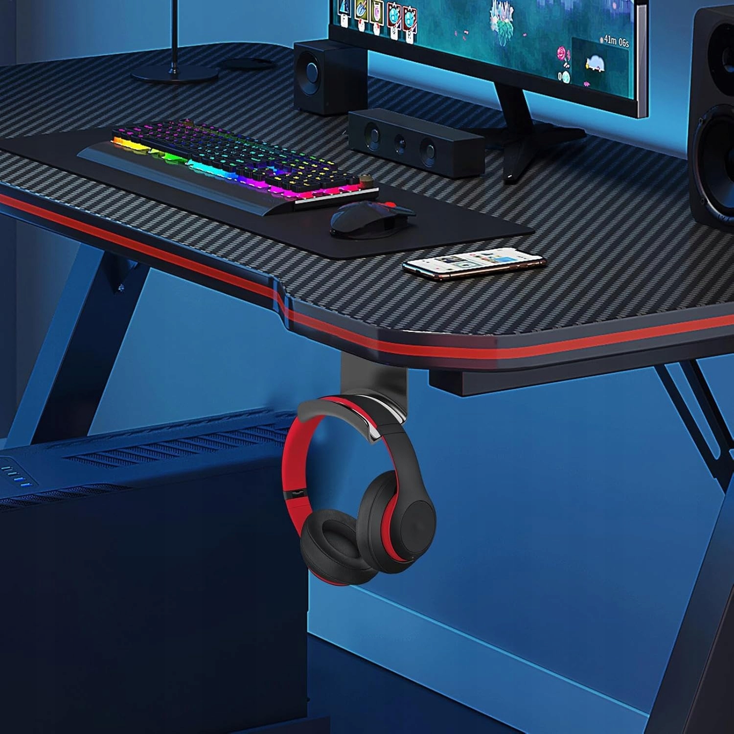 Простір: Попрощайтеся з захаращеним столом завдяки нашій інноваційній підставці для навушників. Використовуйте простір для стін максимально, підвісивши навушники у повітрі - чисту, впорядковану ігрову підставку без безладу.
