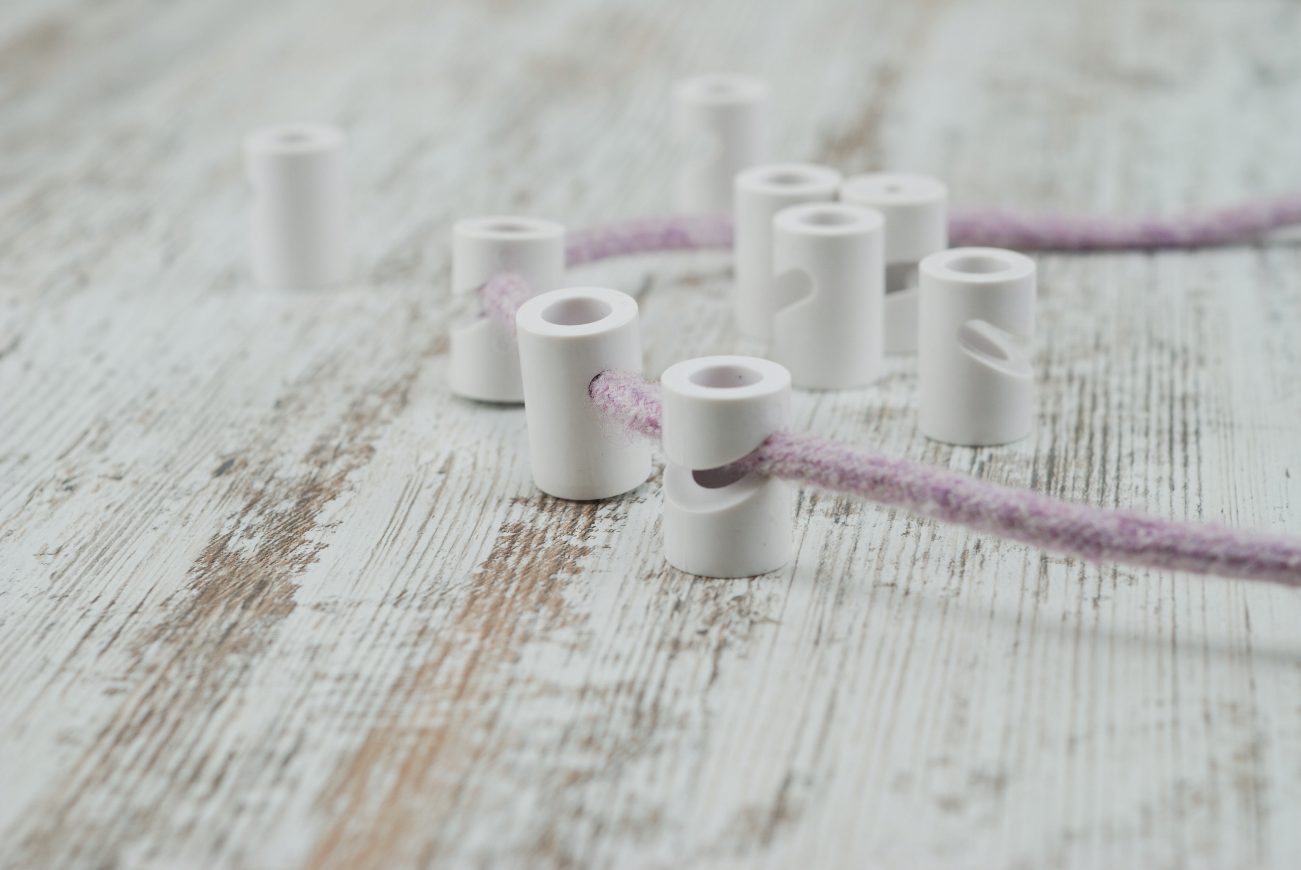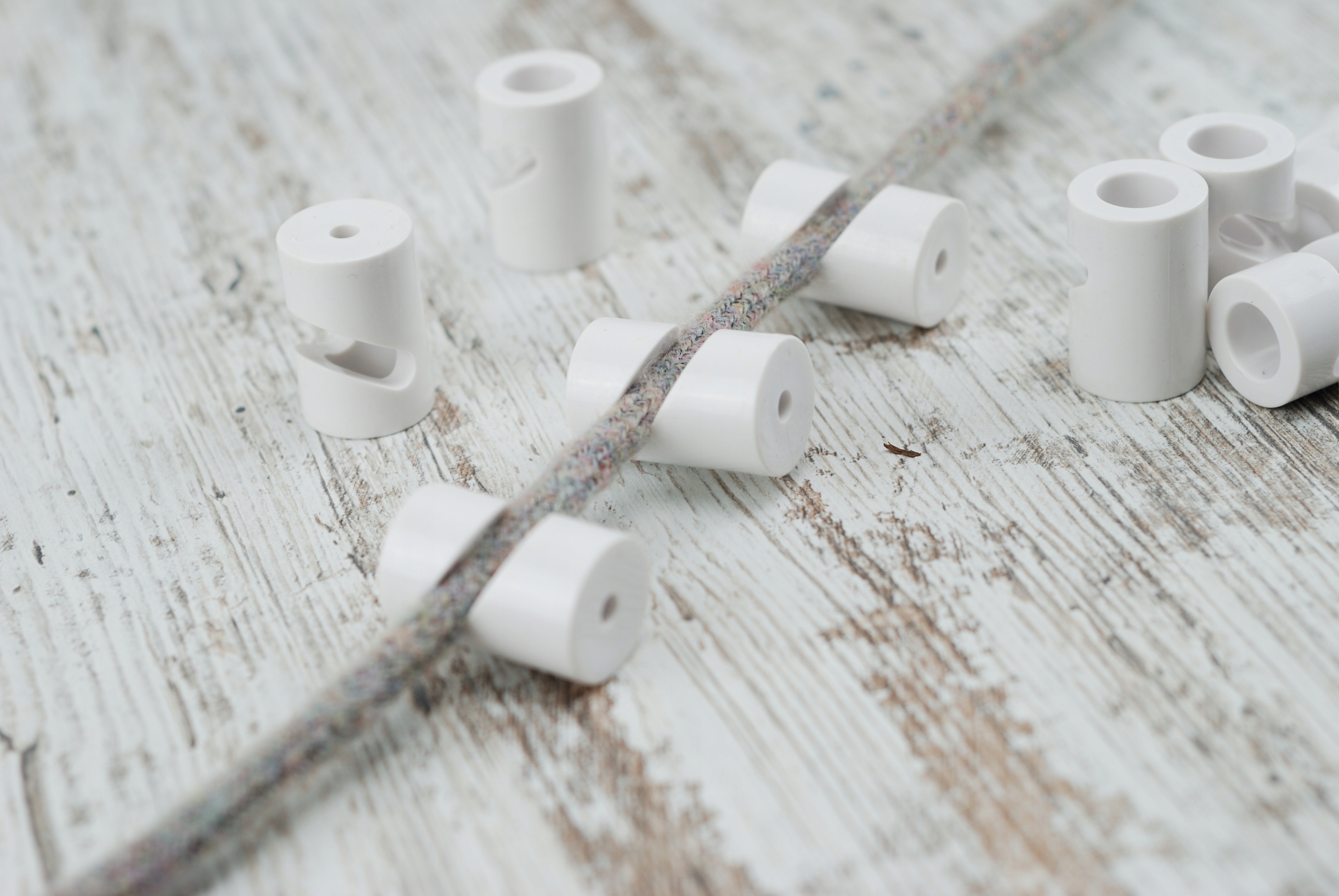 Тримач ідеально підходить для прокладання кабелів діаметром 6-7,5 мм. Діаметр отвору приблизно 6,5 мм, але можна проштовхнути кабелі з товстішою опліткою, оскільки оплетка згинається. У крайньому випадку можна висвердлити ручки.
