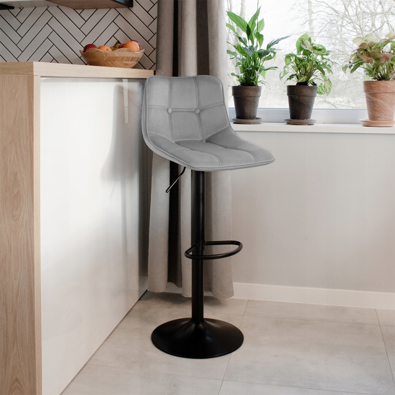 ХОКЕР, ОББИВАНИЙ ВЕЛЮРОМ, РЕГУЛЬОВАНИЙ КУХОННИЙ БАРНИЙ СТІЛЕЦЬ З ВИСОКОЮ СПИНКОЮ
