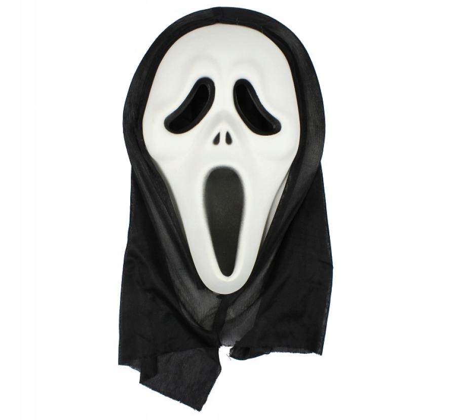 Маска Крик з капюшоном, розміри 30х20 сантиметрів. Матеріал, що тримає маску, можна розтягнути до 22 сантиметрів.