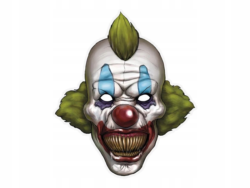 Паперова маска клоуна. Фіксується на еластичну стрічку. Він має білі рамки, завдяки яким вони чудово виглядають на фотографіях.