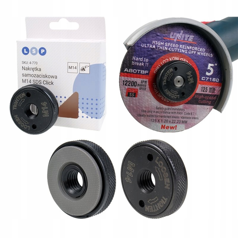 Гайка використовується в малих і великих кутових шліфувальних машинах з різьбою M14
