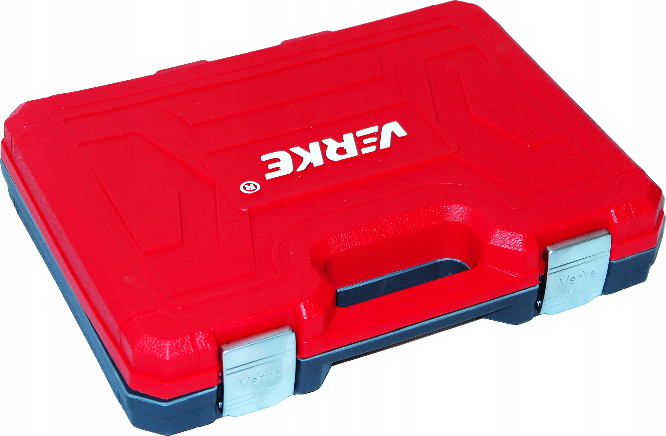 Весь набір упакований у функціональну пластикову валізу. Завдяки цьому кожен інструмент має своє місце, а окремі елементи легко знайти та використовувати. Валіза оснащена міцними металевими застібками