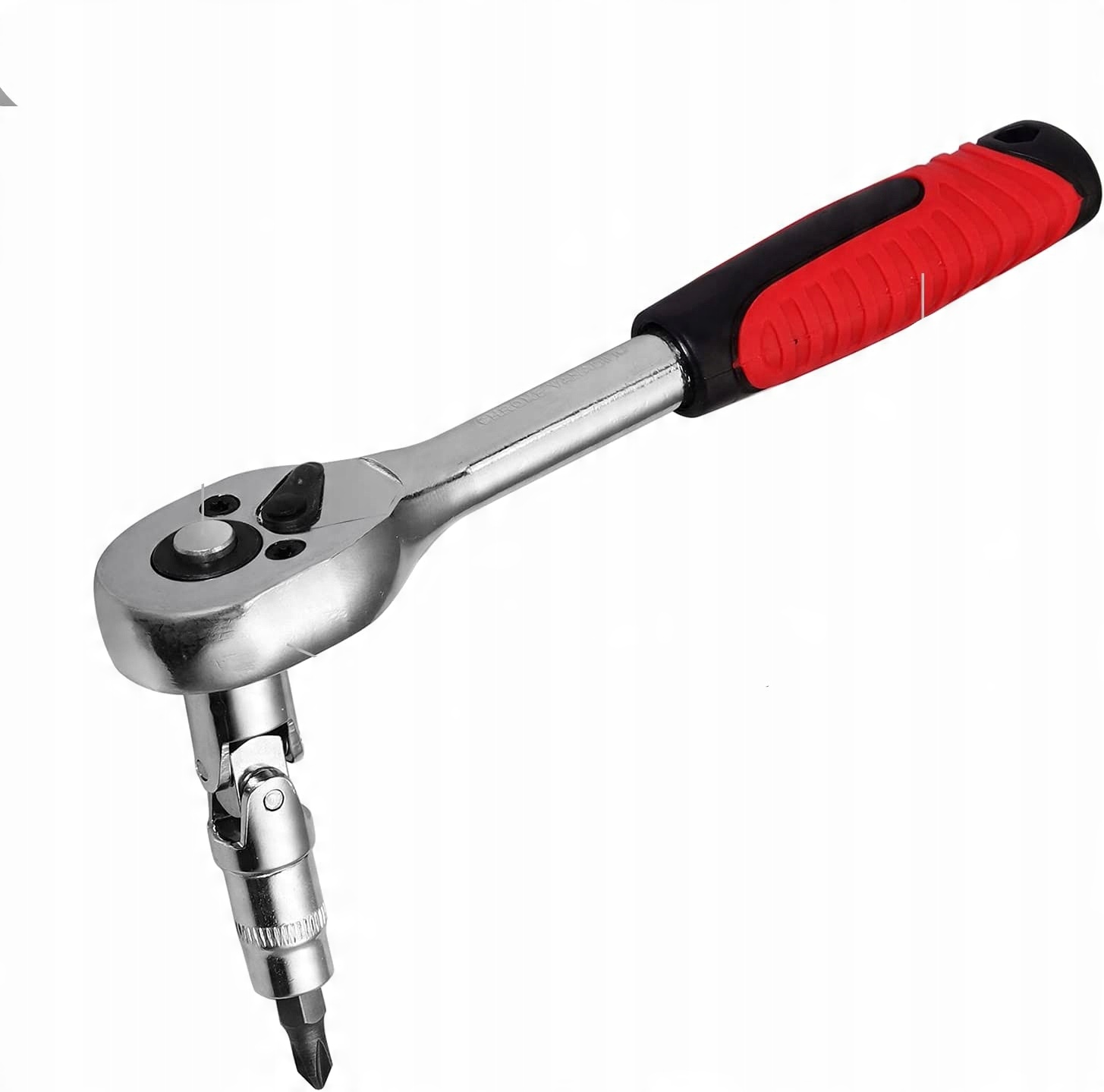 Набір оснащений великою кількістю головок, насадками для викрутки, подовжувачами (включаючи гнучкий), 2 типами ручок - викруткою і поздовжньою, карданним шарніром, адаптером і тріскачкою з перемикачем, що дозволяє швидко і легко змінювати напрямок обертання. Кожен із подовжувачів, ручок, тріскачки та карданного шарніра оснащено кулькою, яка запобігає випаданню прикріпленої розетки - це покращує ефективність роботи та підвищує комфорт і безпеку, жодна розетка не випаде під час роботи.