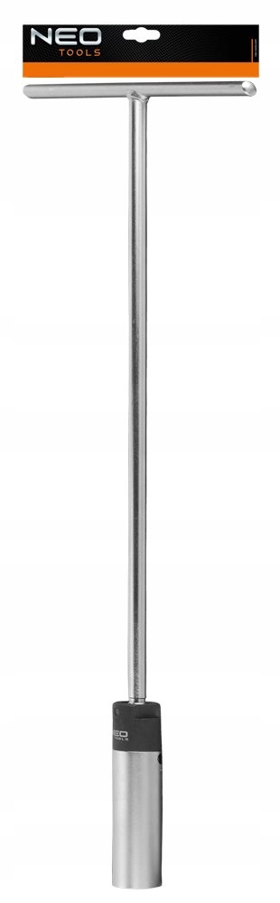 Свічковий ключ NEO з міцної хромованадієвої сталі з Т-подібною ручкою. 3/8". Має механізм, який обмежує максимальний момент затягування до 25 Нм, що виключає ризик пошкодження різьби. Гарантує економію робочого часу. Сертифікат TÜV Rheinland гарантує високу якість і надійність виробу.