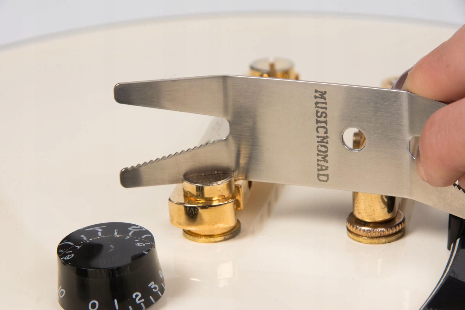 Здійснювати налаштування вашого обладнання стало набагато простіше завдяки спеціальному багаторазовому ключу від MusicNomad. Завдяки високоякісній 100% нержавіючій сталі в поєднанні з прецизійними зубами, він забезпечує міцне зчеплення з унікальними компонентами, такими як перемикачі та регульовані ручки моста. Низький профіль 1,2 мм дозволяє збільшити гучність і натягнути ручки для закручування важкодоступних гайок. М'яка замшева підошва з мікрофібри захищає обробку від подряпин. Компактний розмір для кишень і футлярів, великий для виступу на сцені та в студії.