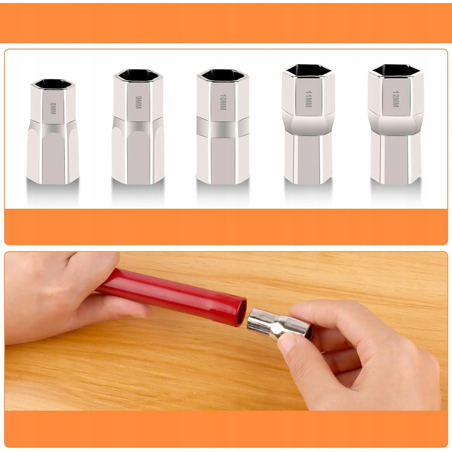 2. Комплектація: Ви отримаєте набір з 6 предметів з викруткою та п'ятьма додатковими адаптерами (8, 9, 10, 11 і 12 мм). Не обертайте змінну головку вниз.
