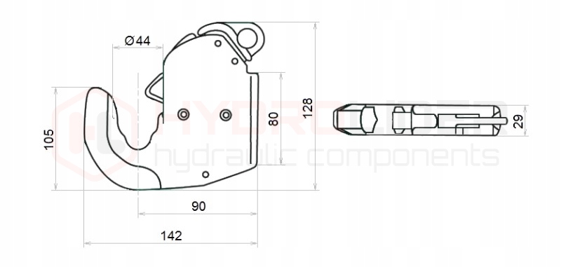 ЗВАРЮВАННЯ КІНЦЯ ГАКА КАТ. 1 БЕЗ КУЛЯ 44Х28 ДЛЯ ТРАКТОРА Тяга рульова