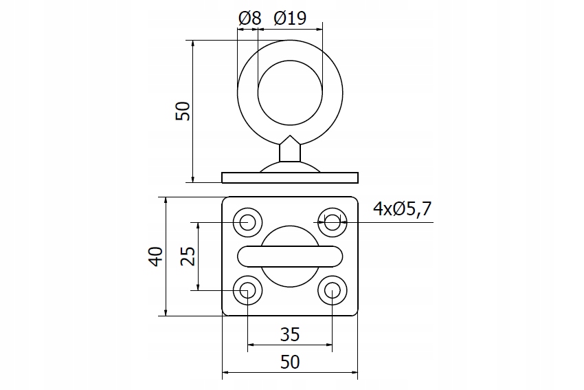 ГАКЧОК НЕРІЖАЮЧА СТАЛЬ 8MM 50X40MM INOX