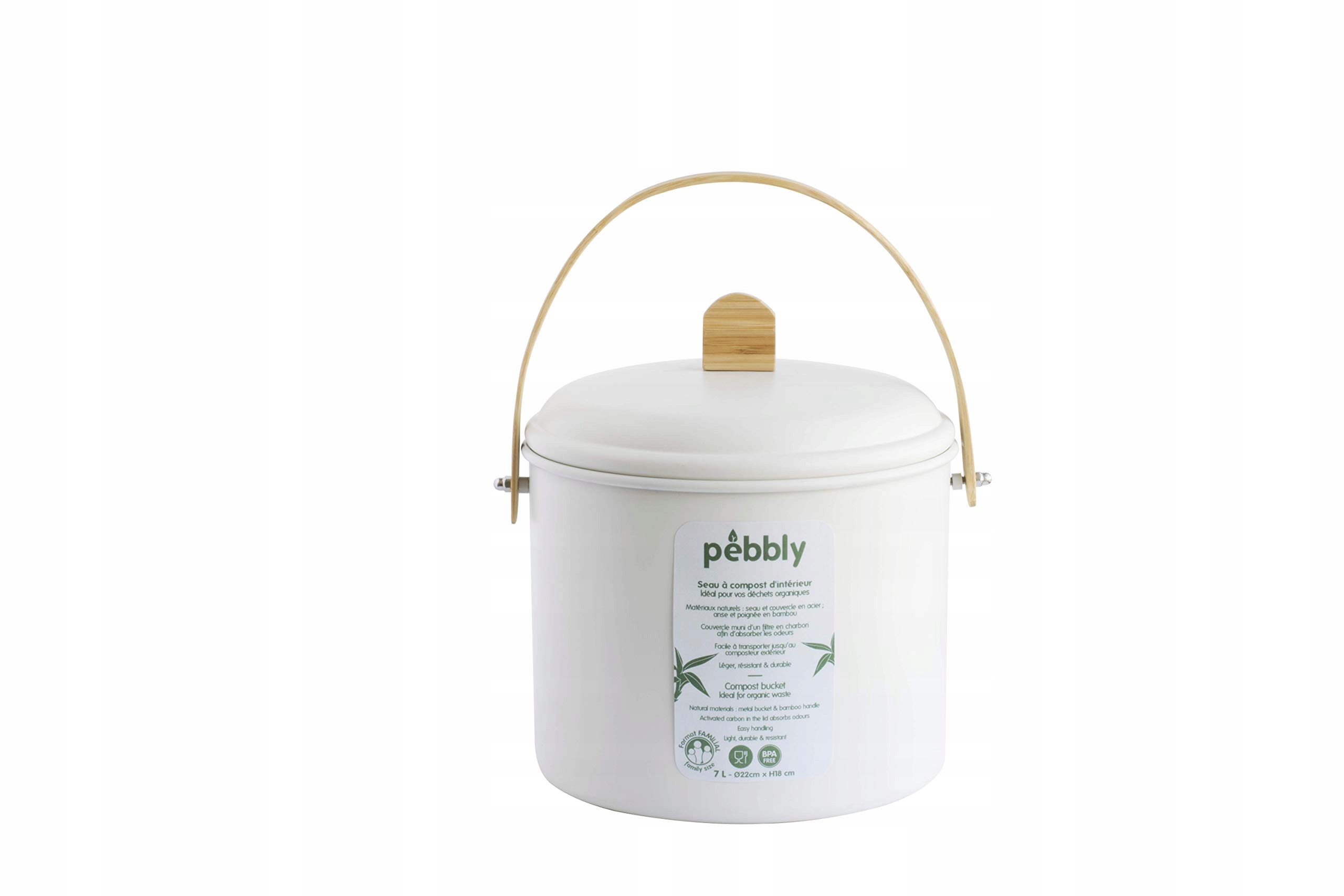 металевий контейнер для внутрішнього компосту з ємністю 7 літрів з природною бамбуковою ручкою. Оснащений знімним вуглецевим фільтром для зменшення запахів. Практичне рішення для легкого перенесення на компостер. Ідеально підходить для домашнього використання.